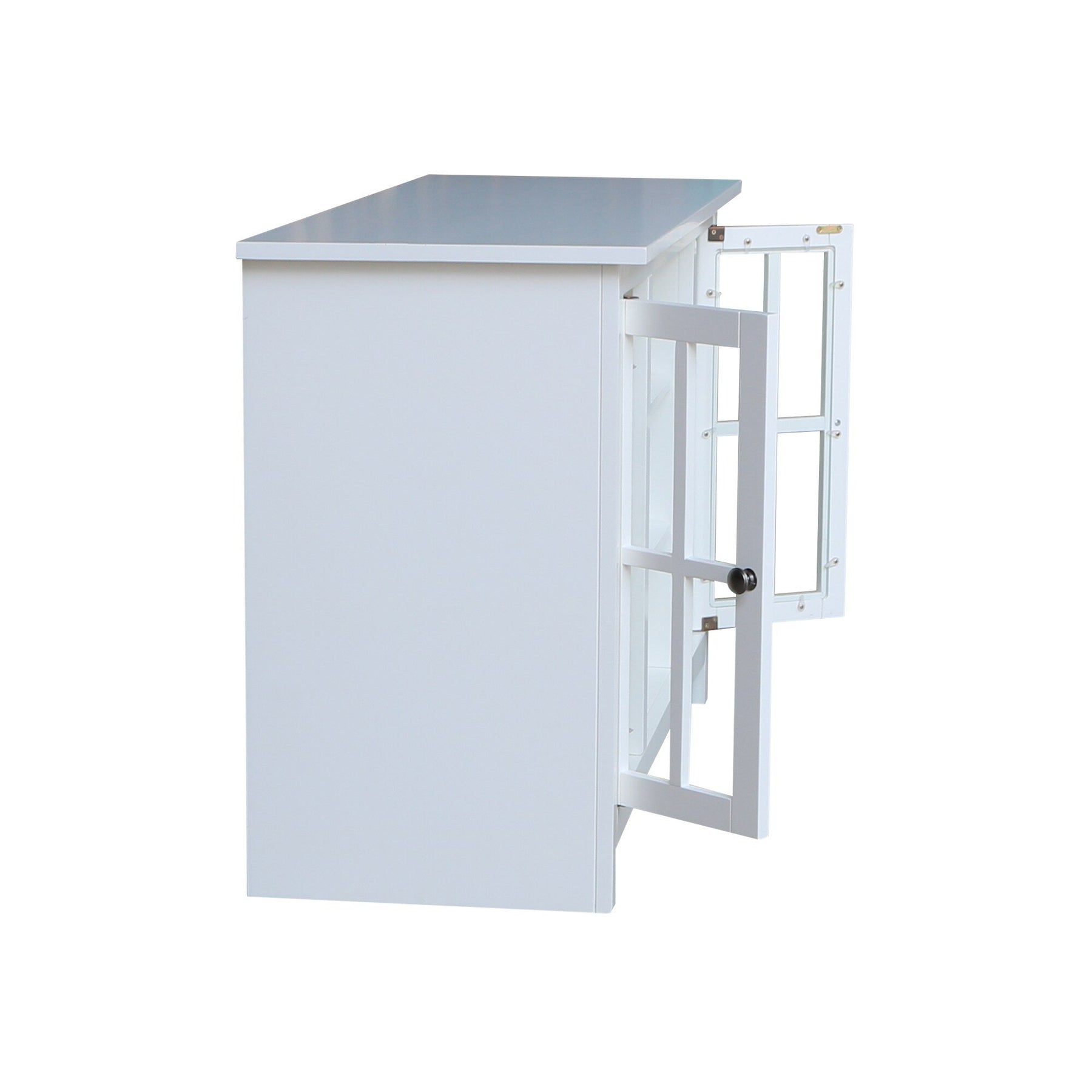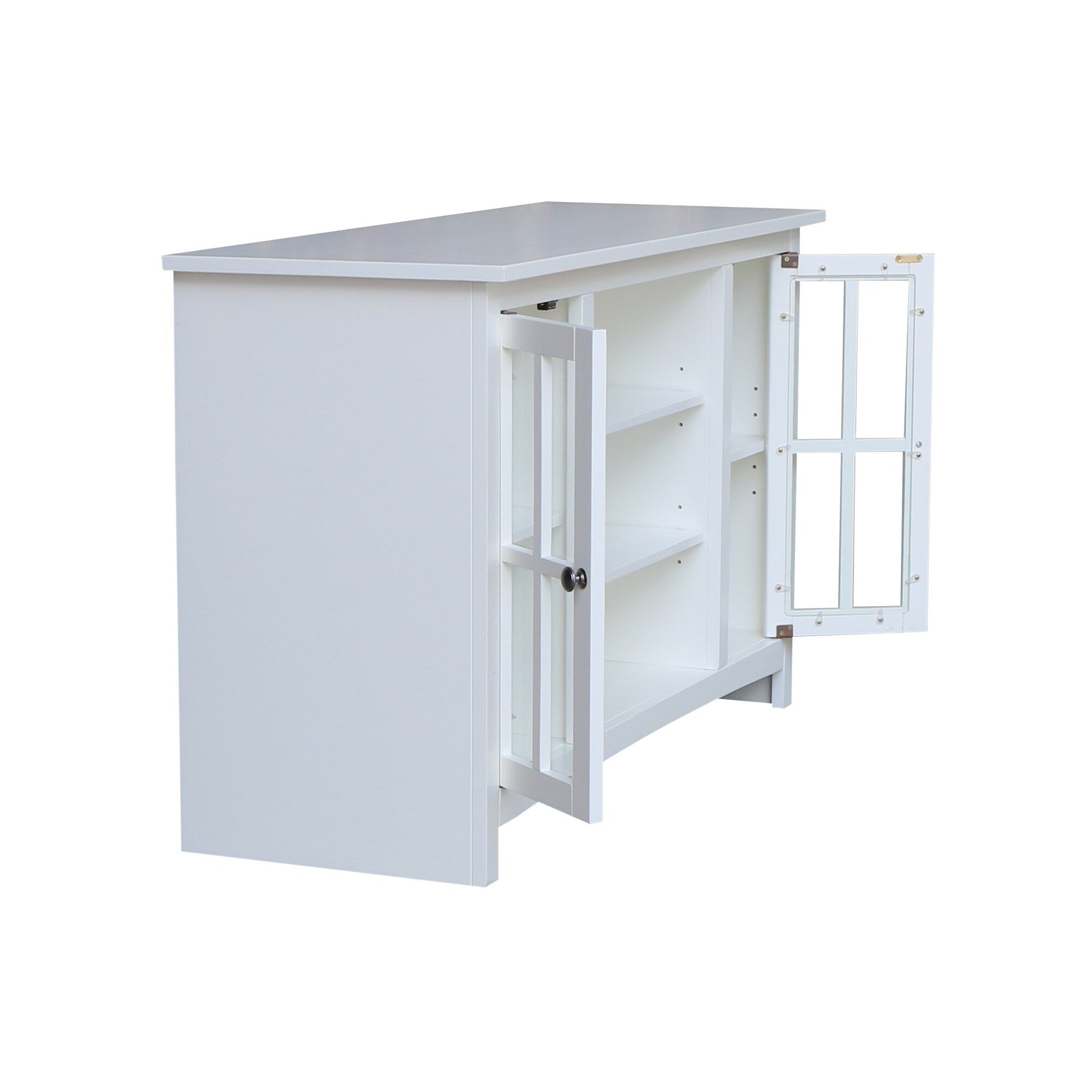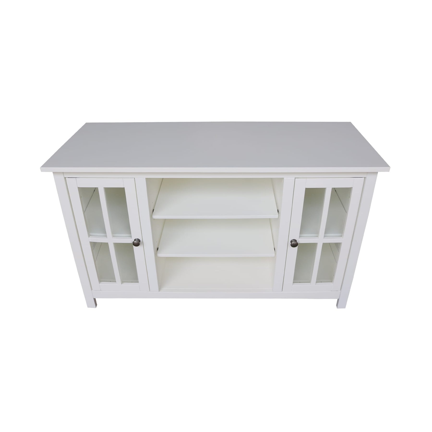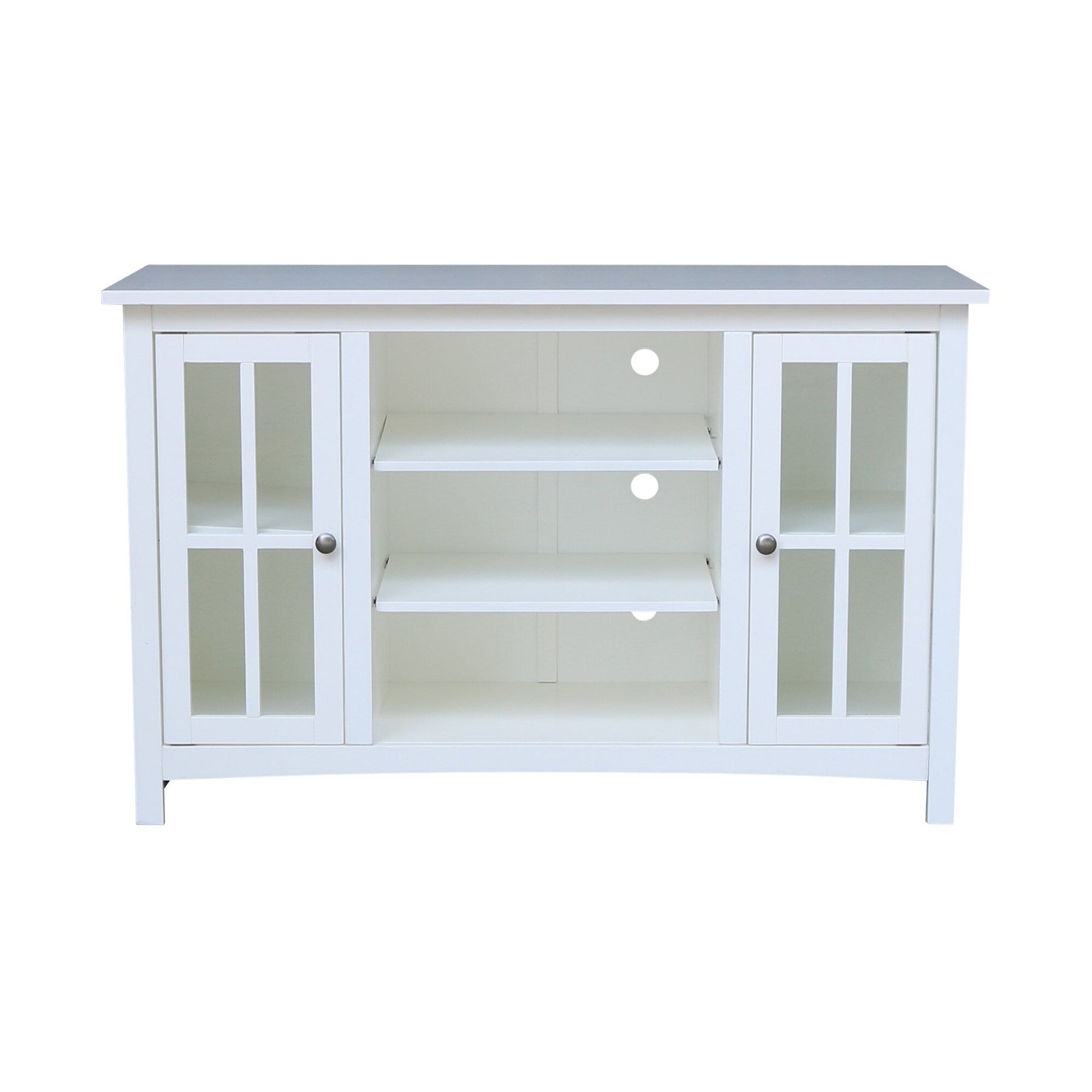 Elevate your living space with the International Concepts Traditional White TV Cabinet, designed to accommodate TVs up to 52 inches. This stylish piece combines elegance with functionality, constructed from eco-friendly solid parawood for lasting durability. Its versatile white finish makes it a perfect fit for any home decor.