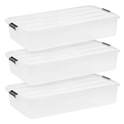 Elevate your home organization with the IRIS 50 Qt. Under Bed Storage Container 3-Pack, designed to efficiently utilize space under your bed. These clear, stackable bins feature secure buckle-up latches and a sleek, space-saving design. Whether for seasonal clothes or movies, these containers ensure easy access while keeping contents visible and organized.