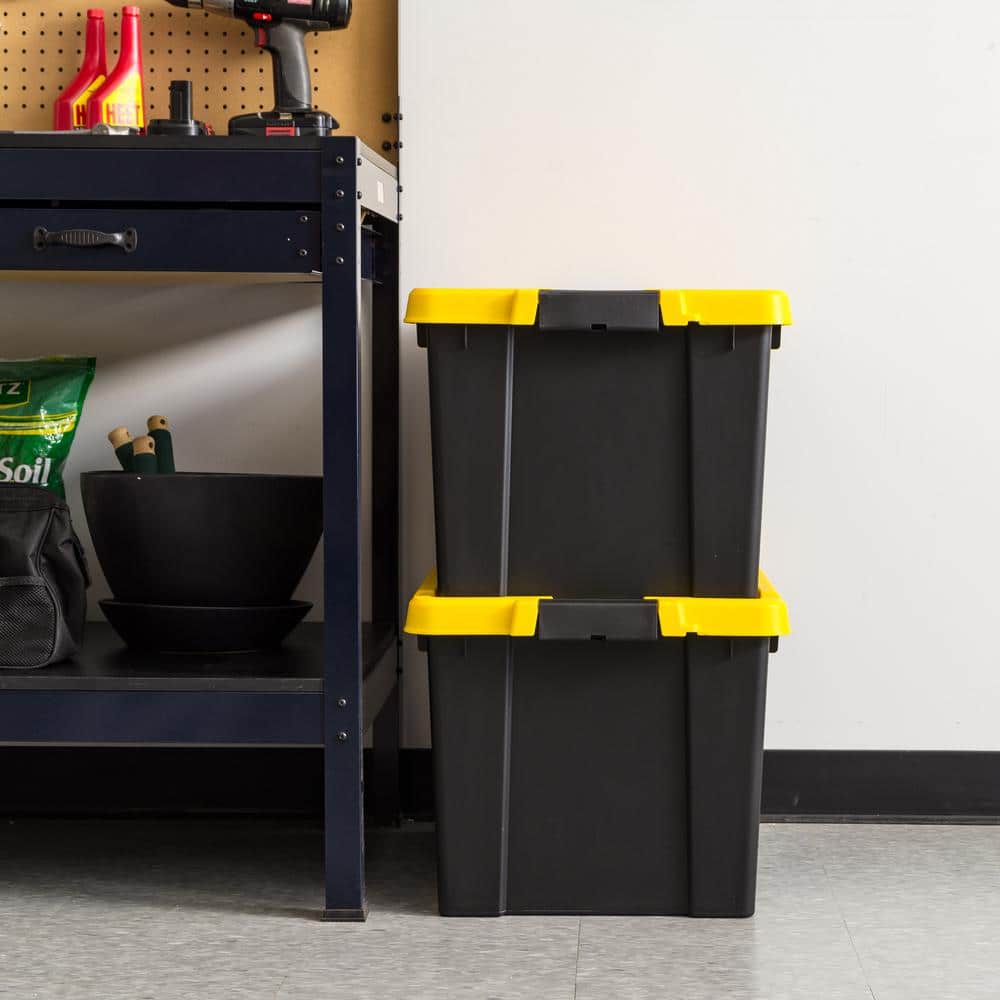 IRIS 80 Qt./20 Gal. Heavy-duty Stackabl Storage Tote in Black with Yellow Lid - Set of 2