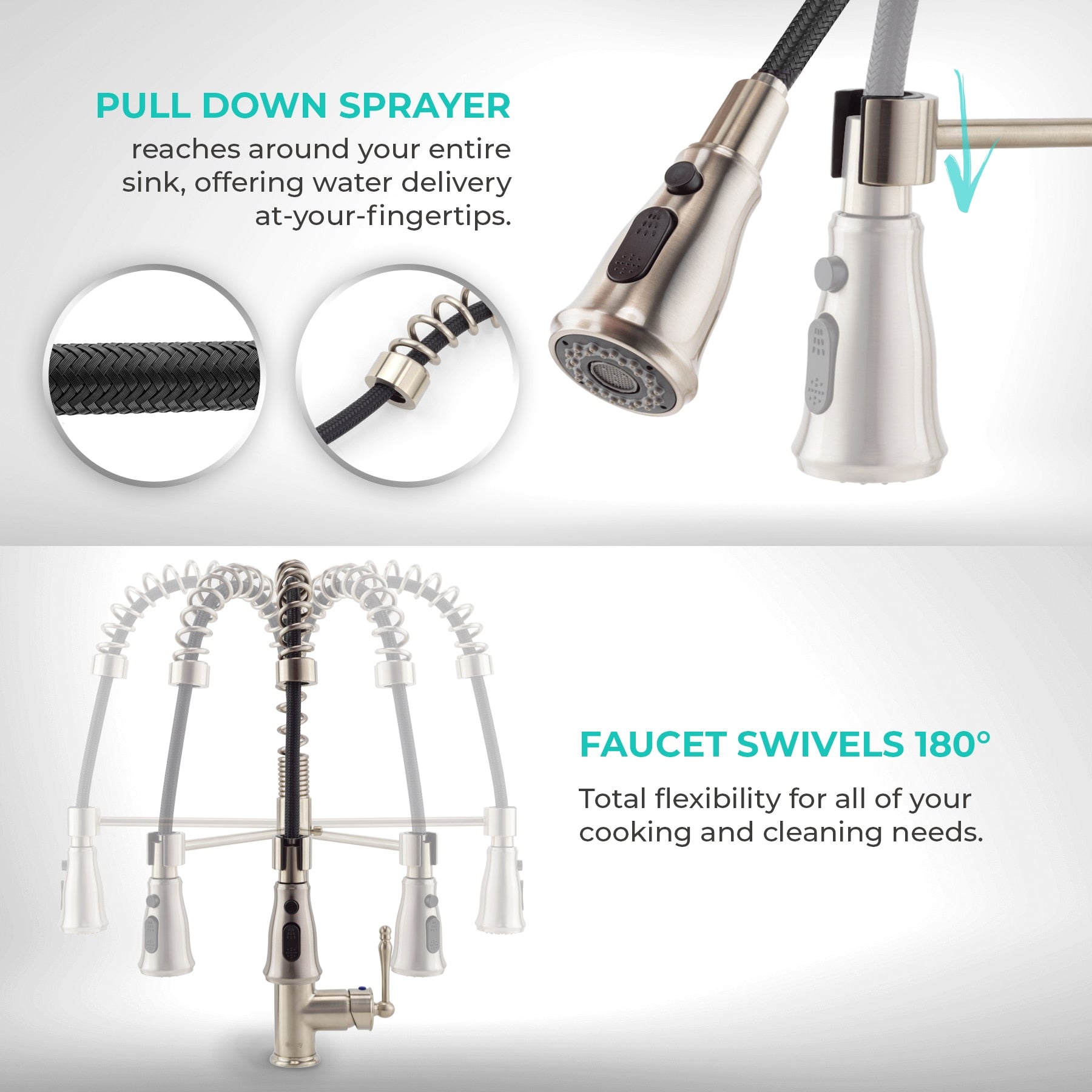 Pro-Style Faucet Included: Single-hole, deck-mounted pull-down sprayer with stream/spray/pause modes