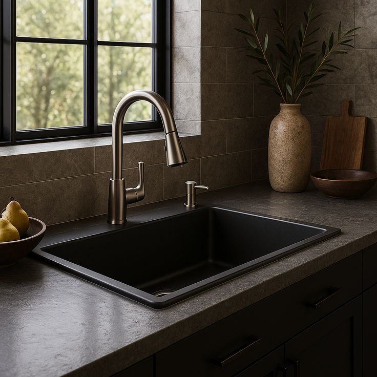 The KOHLER Neoroc Matte Black Kitchen Sink Kit offers a durable composite sink with a sleek matte finish, paired with a pull-down faucet and soap dispenser. Designed for top-mount or undermount installation, this kit combines functionality and style for modern kitchens.