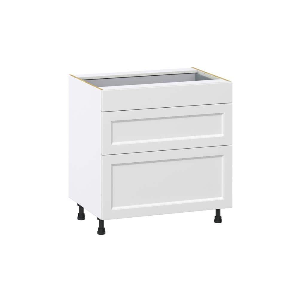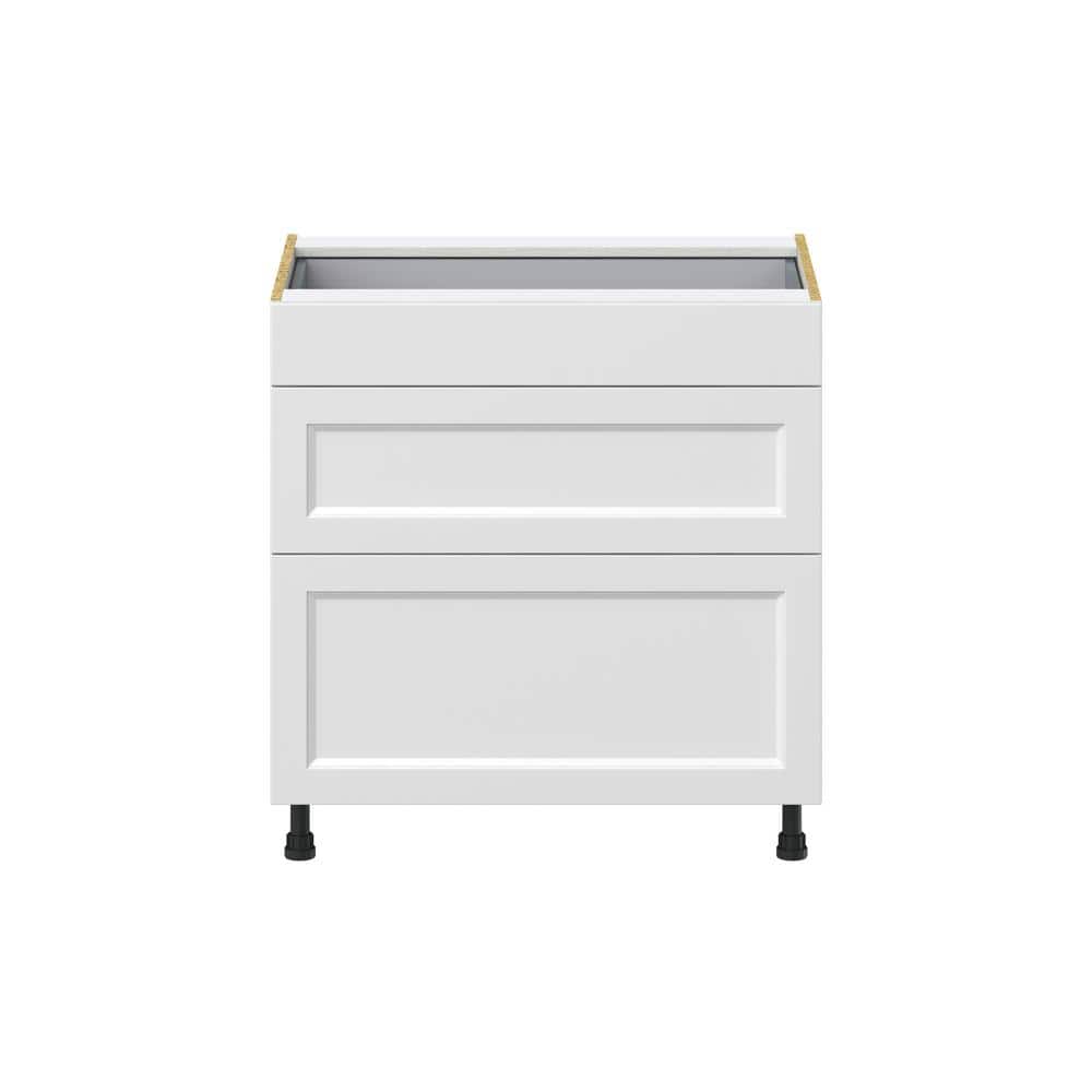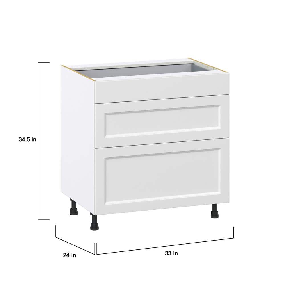 33-Inch White Shaker Base Kitchen Cabinet with 3 Drawers