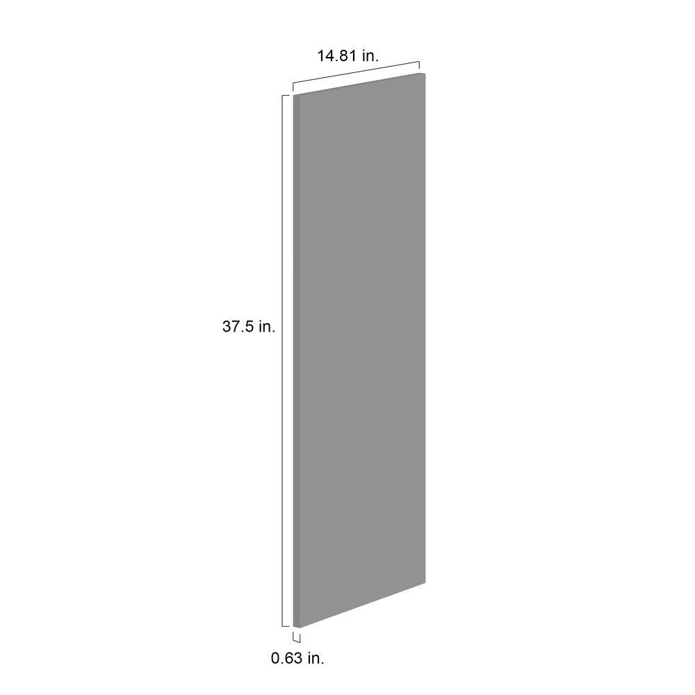 A: While the cabinet's exterior is predominantly in a slate gray finish, it comes with matching cover panels to complete any desired look, particularly on visible ends.