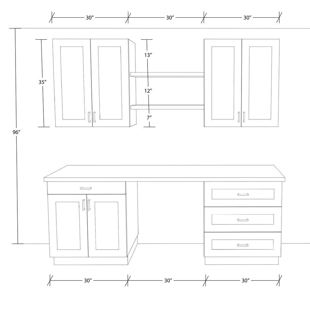 J COLLECTION Bristol 92.5 in. W x 89.5 in. H x 24 in. D Painted Slate Gray Assembled Office Base Cabinet Bundle