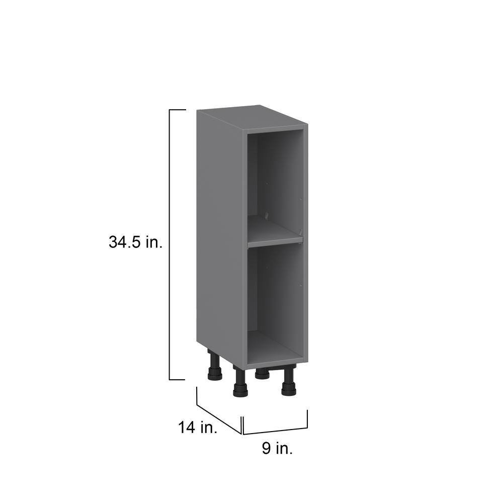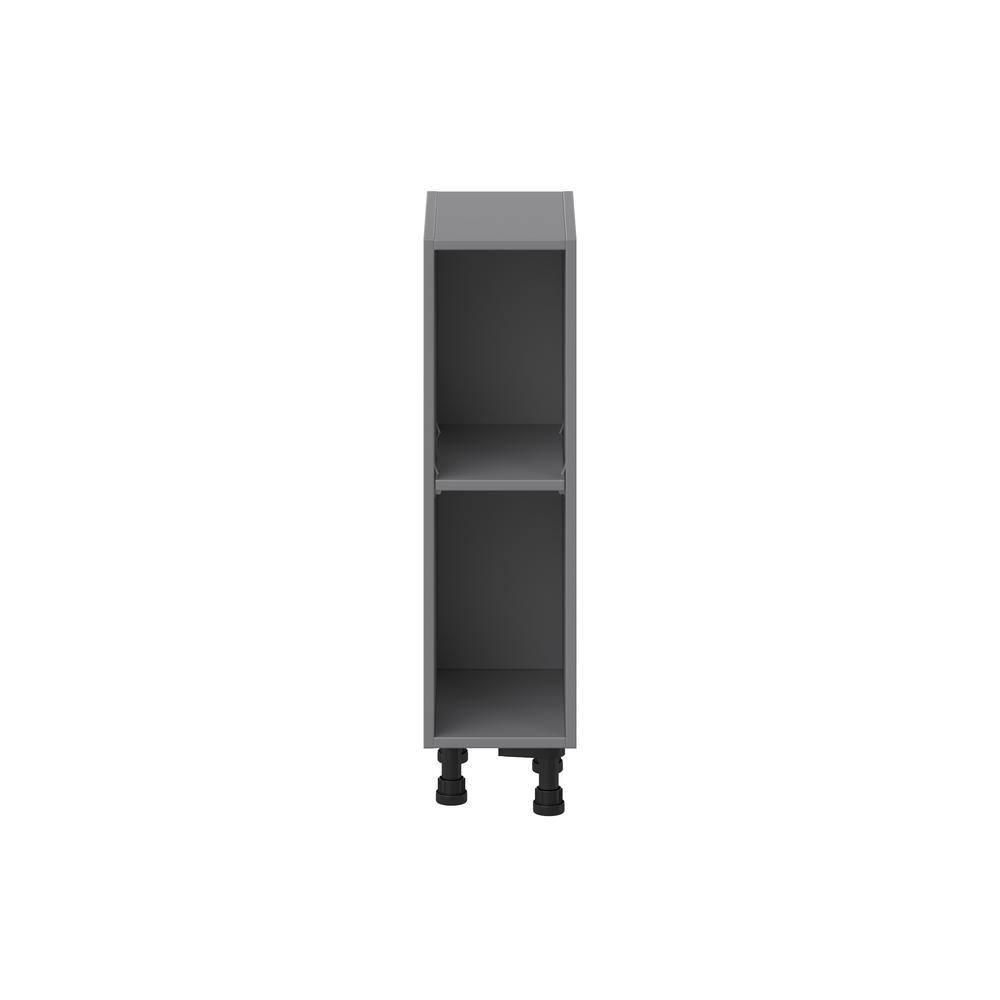 The J COLLECTION Bristol Slate Gray Base Open Kitchen Cabinet combines aesthetic appeal with practical design, featuring a sleek frameless style for unobstructed access. Its high-quality construction includes durable, chip-resistant finishes, complemented by pre-attached adjustable legs for easy installation and leveling. With its stylish design and thoughtful features, this cabinet is your go-to for a modern kitchen makeover.