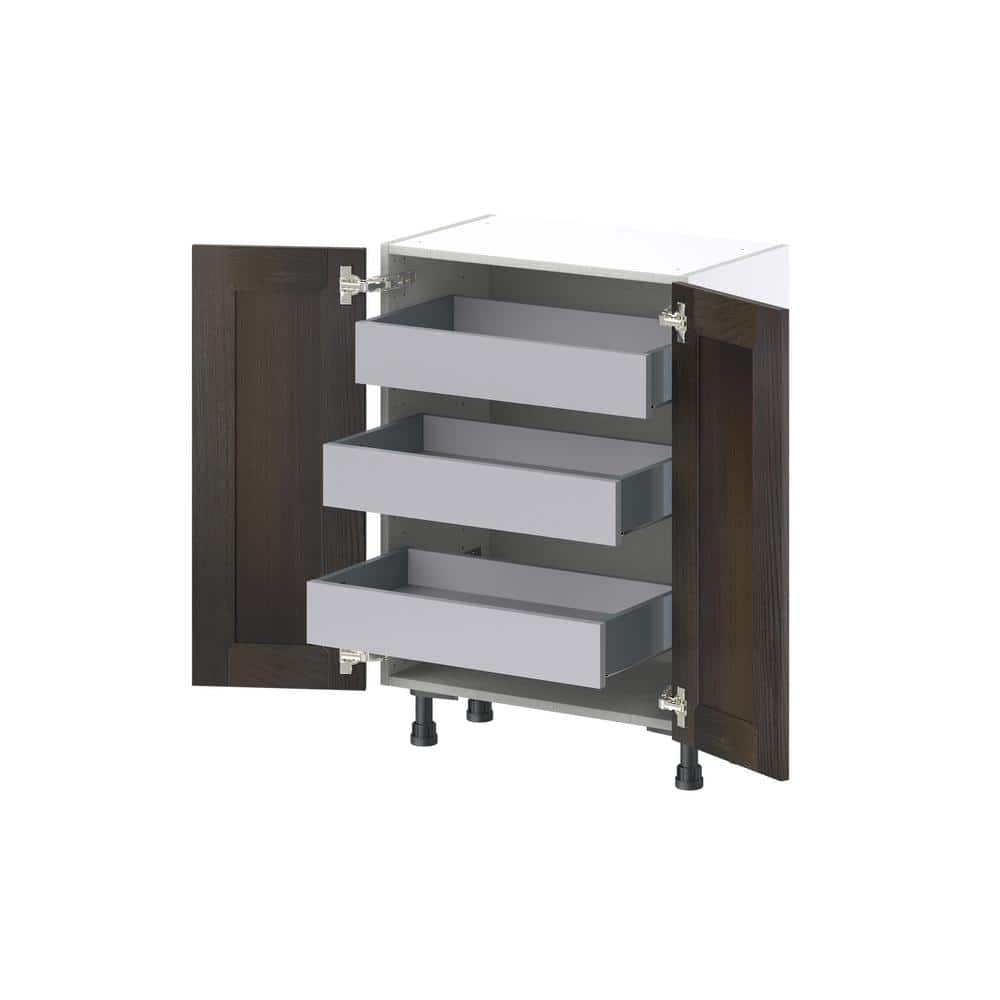 The Lincoln Chestnut Solid Wood Base Cabinet by J COLLECTION combines elegance with functionality in your kitchen. Equipped with deep drawers and a frameless design, it offers ample storage while providing easy access to your essentials. The solid ash door frame and chestnut finish ensure lasting beauty and endurance.