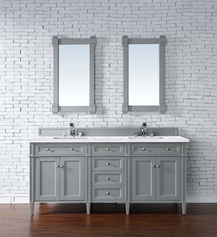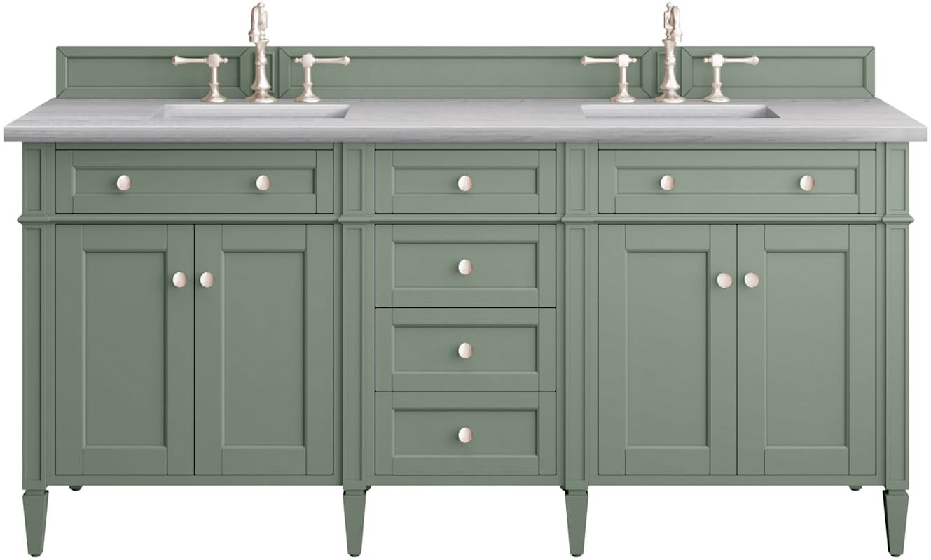 James Martin Vanities Brittany 72" Double Basin Poplar Wood Vanity Set with 3 cm Arctic Fall Solid Surface Top, Rectangular Undermount Sinks – Smokey Celadon