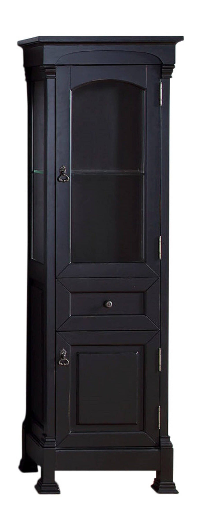 Experience elegance and practicality with the James Martin Vanities Brookfield Linen Cabinet. This antique black, wood-crafted freestanding piece features soft-close mechanisms on its glass-insert door and bottom storage drawer, ensuring chic storage solutions without compromising design integrity.