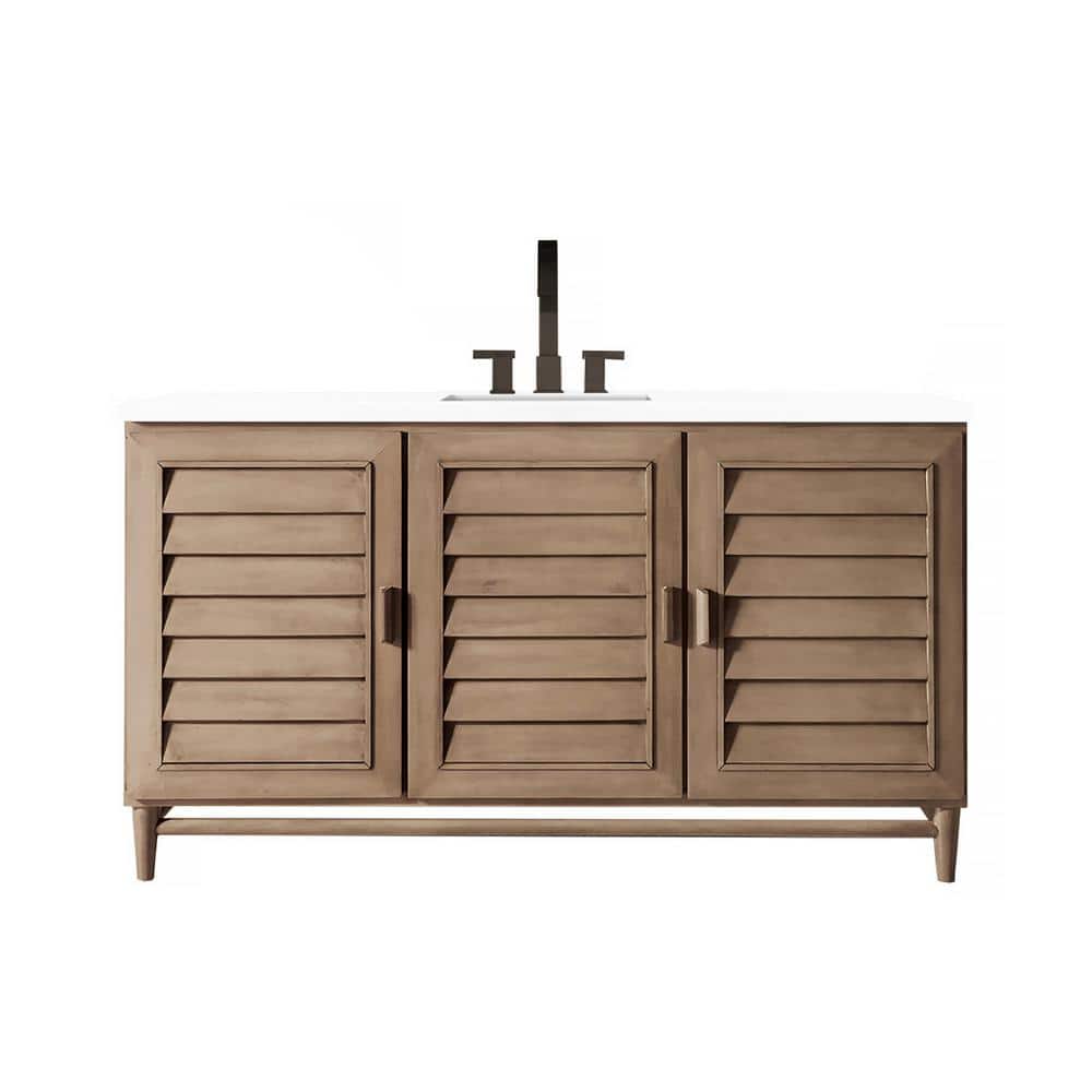 James Martin Vanities Portland 60" Bathroom Vanity in Whitewashed Walnut with Quartz Top