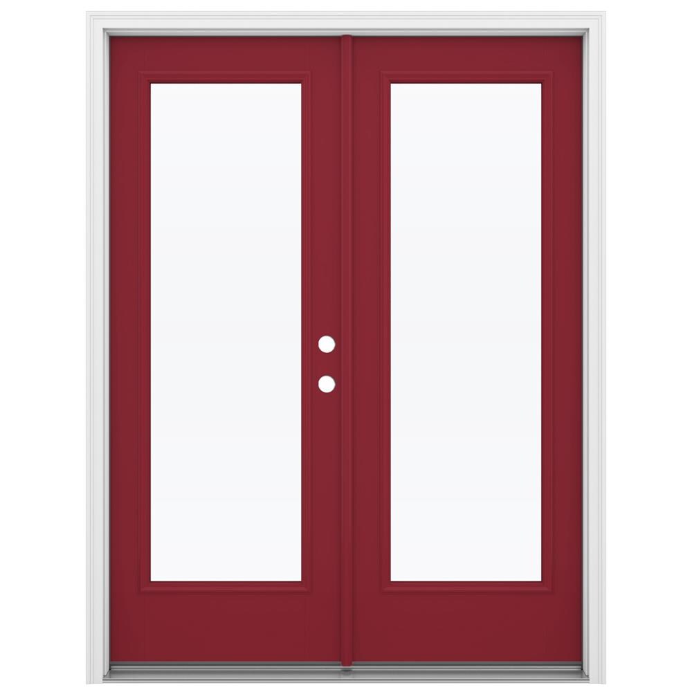 JELD-WEN 60-in x 80-in 4-9/16-in Low-E Clear Glass Cranberry Fiberglass French Left-Hand Inswing Double Patio Door with Brickmould