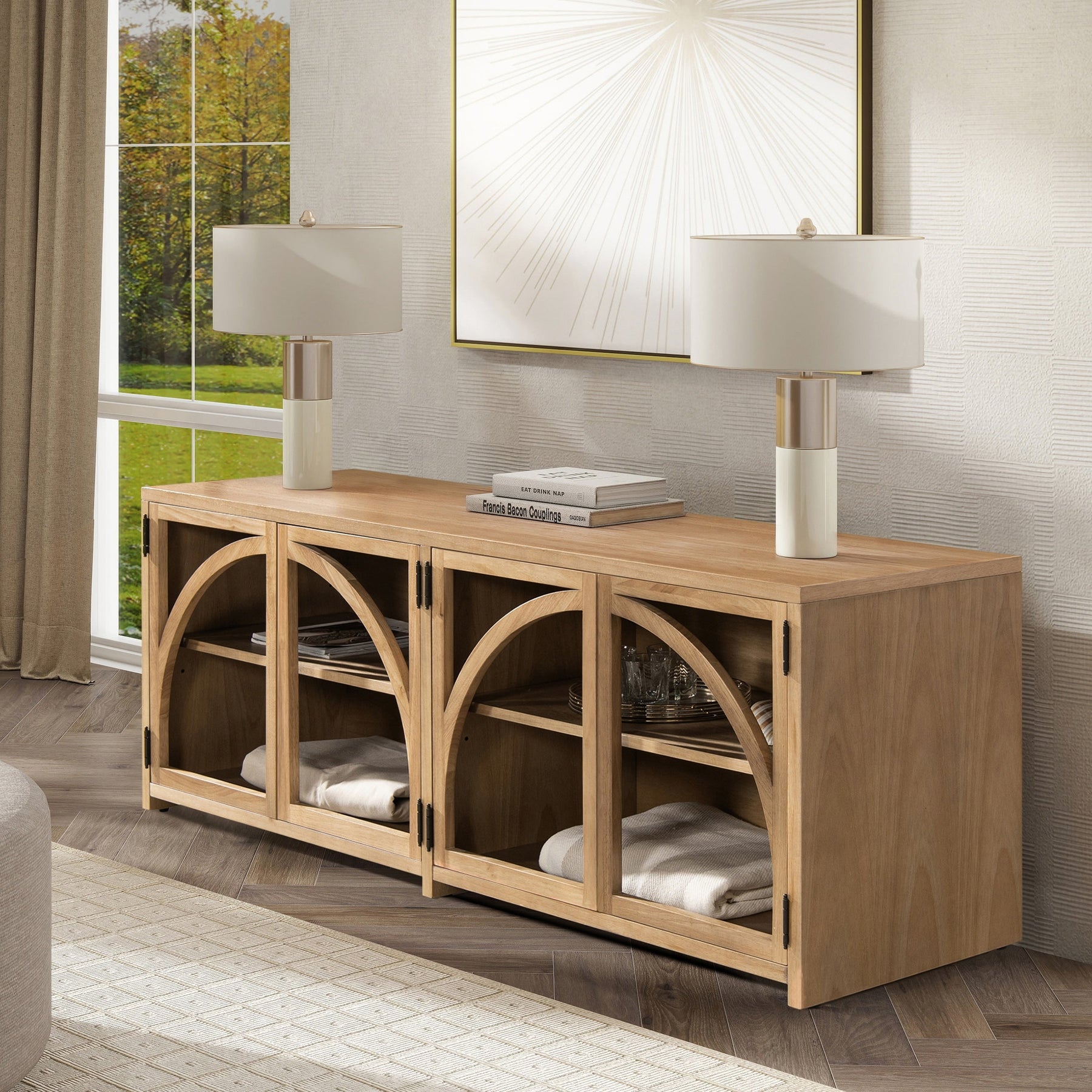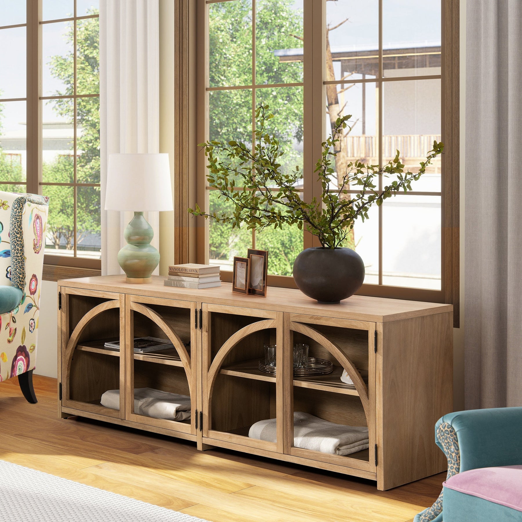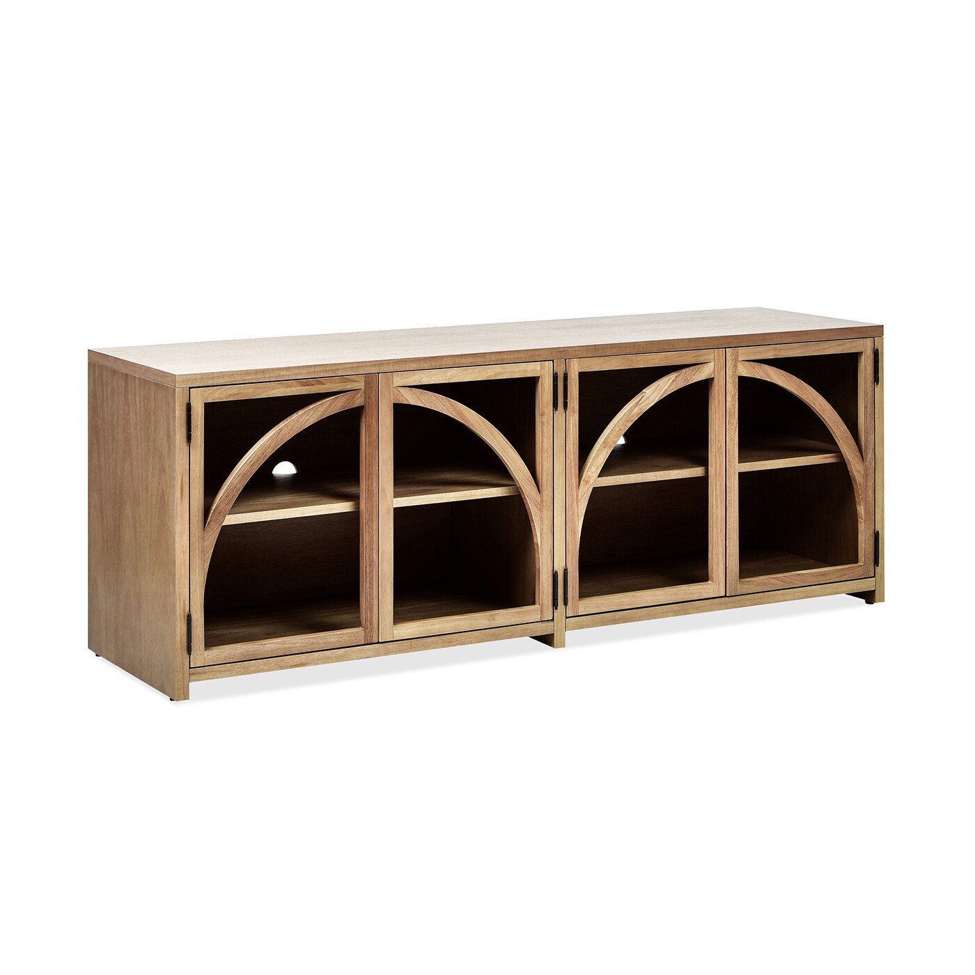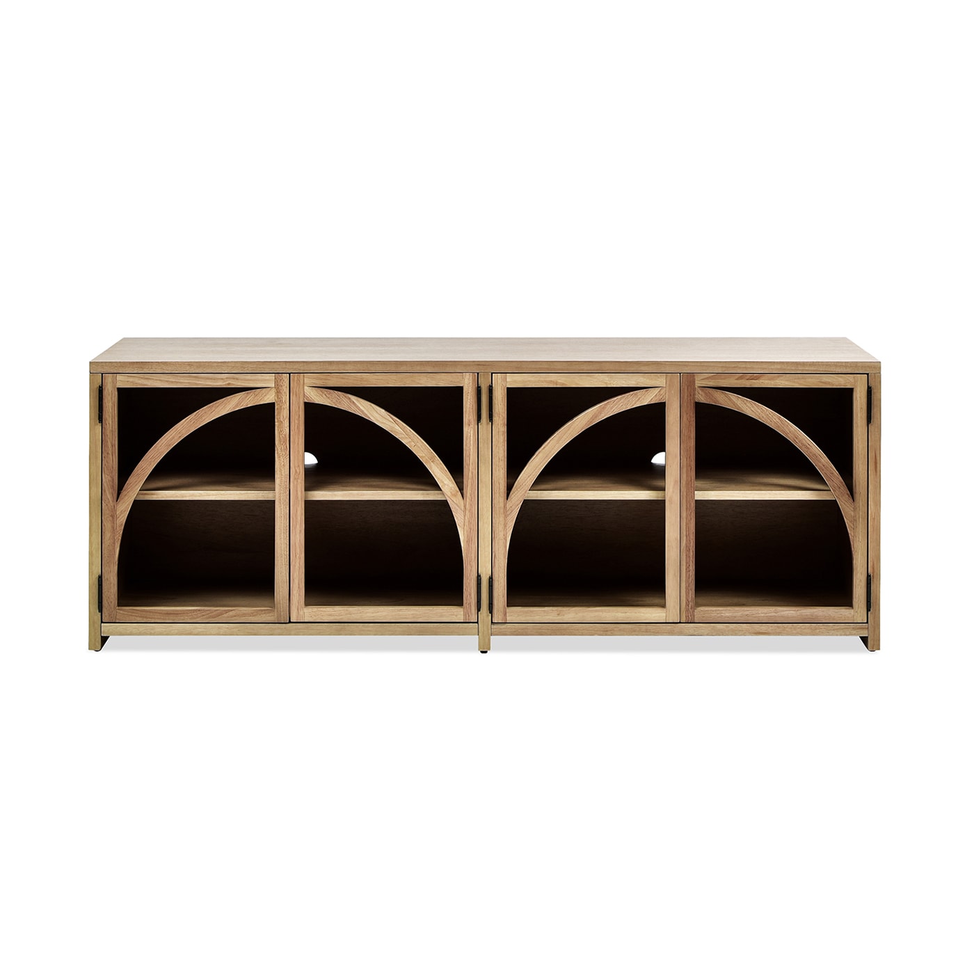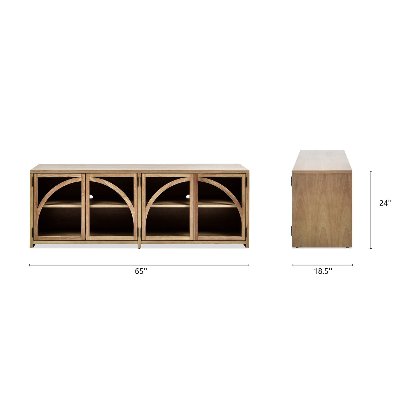 Introducing the Oliver TV Stand—a masterpiece of rustic charm balanced with modern practicality. Imagine this stunning piece anchoring your living space, with its sublime arched door fronts offering a nod to timeless design. Rubberwood's rich, natural hues infuse warmth and earthiness, making it the perfect companion for a cozy family room or an elegant study. Show off your curated collection of artifacts on its ample open shelving, letting it convey your unique style story. Truly, it’s a piece of luxury that dictates refined living while embracing simplicity.