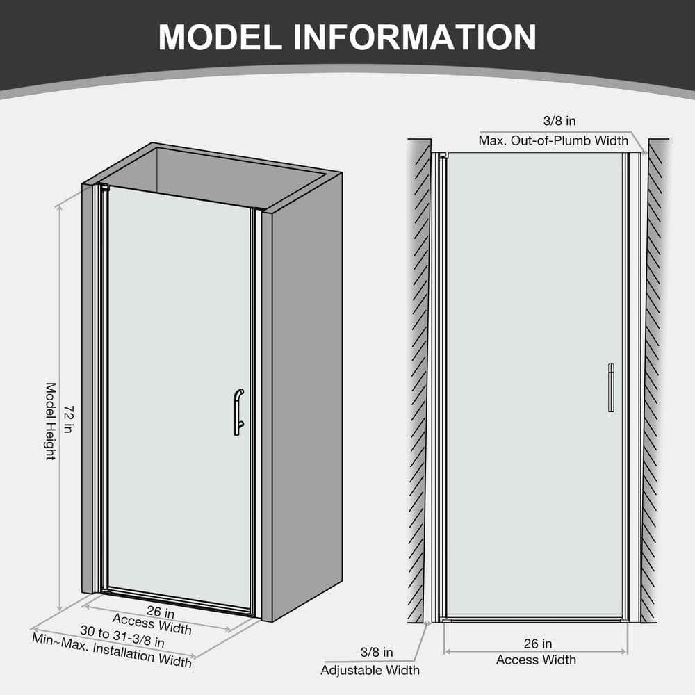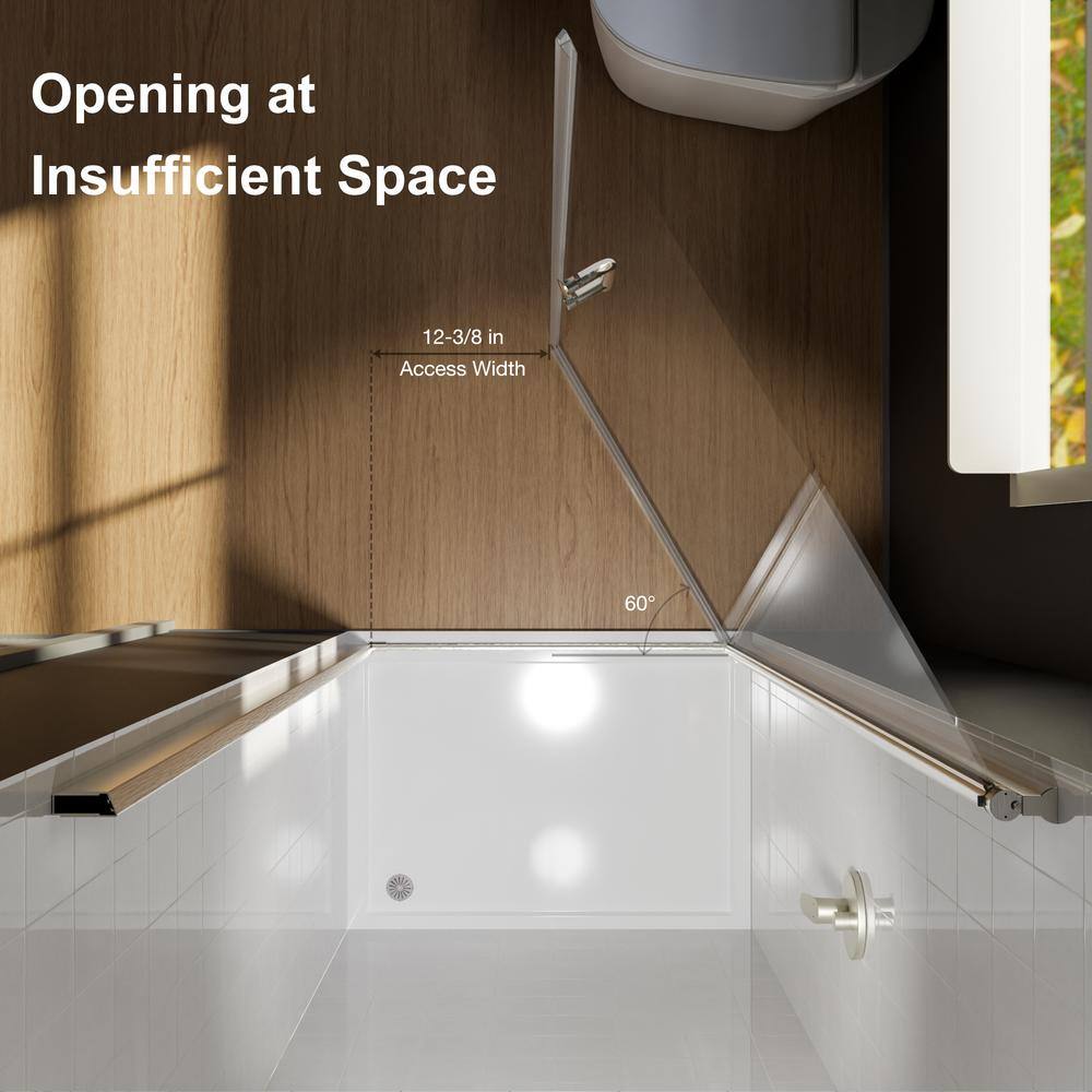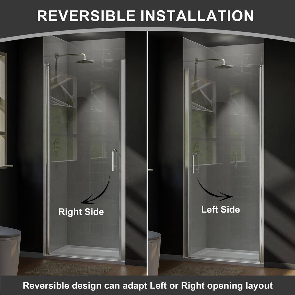 Q: How easy is the installation process? A: The shower door is designed for easy installation in alcove spaces, provided with clear instructions and necessary hardware.