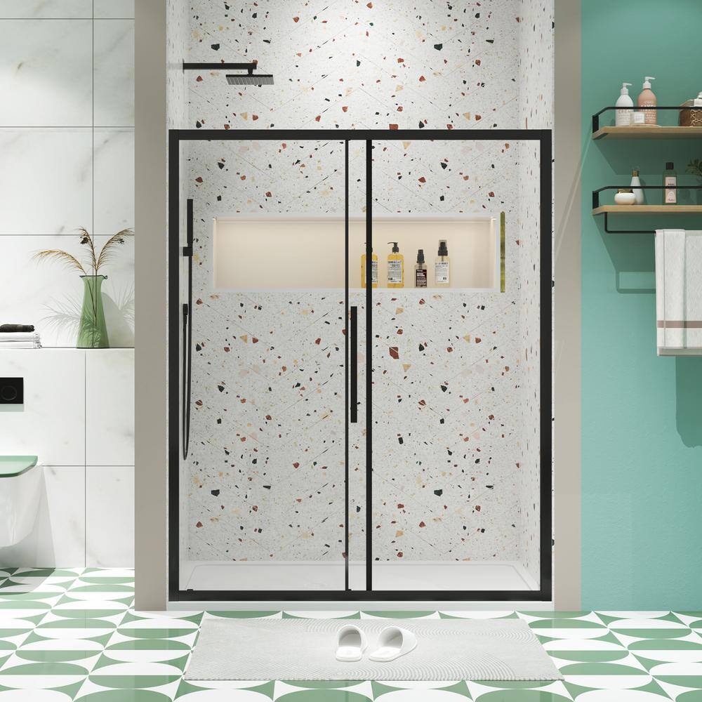 Transform your bathroom into a sleek, contemporary haven with our Matte Black Sliding Shower Door. The striking black frame serves as a bold statement piece, while the tempered glass invites light into the space, blending privacy and openness perfectly. Accentuate the door with lush greenery or minimalist décor to create a serene sanctuary. Elevate everyday routines into luxurious experiences with a design that epitomizes modern elegance.