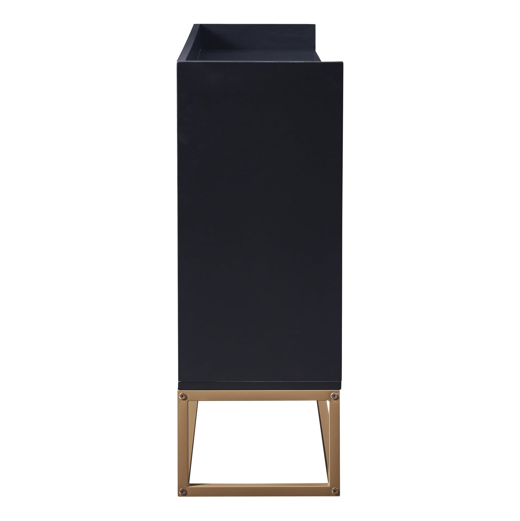 The JIMSMAISON Contemporary Black Sideboard is a sleek addition to any modern living space. Crafted with high-quality particle board and a robust steel pipe support base, its minimalist design is matched by exceptional functionality with a unique push-to-open mechanism for fuss-free access.