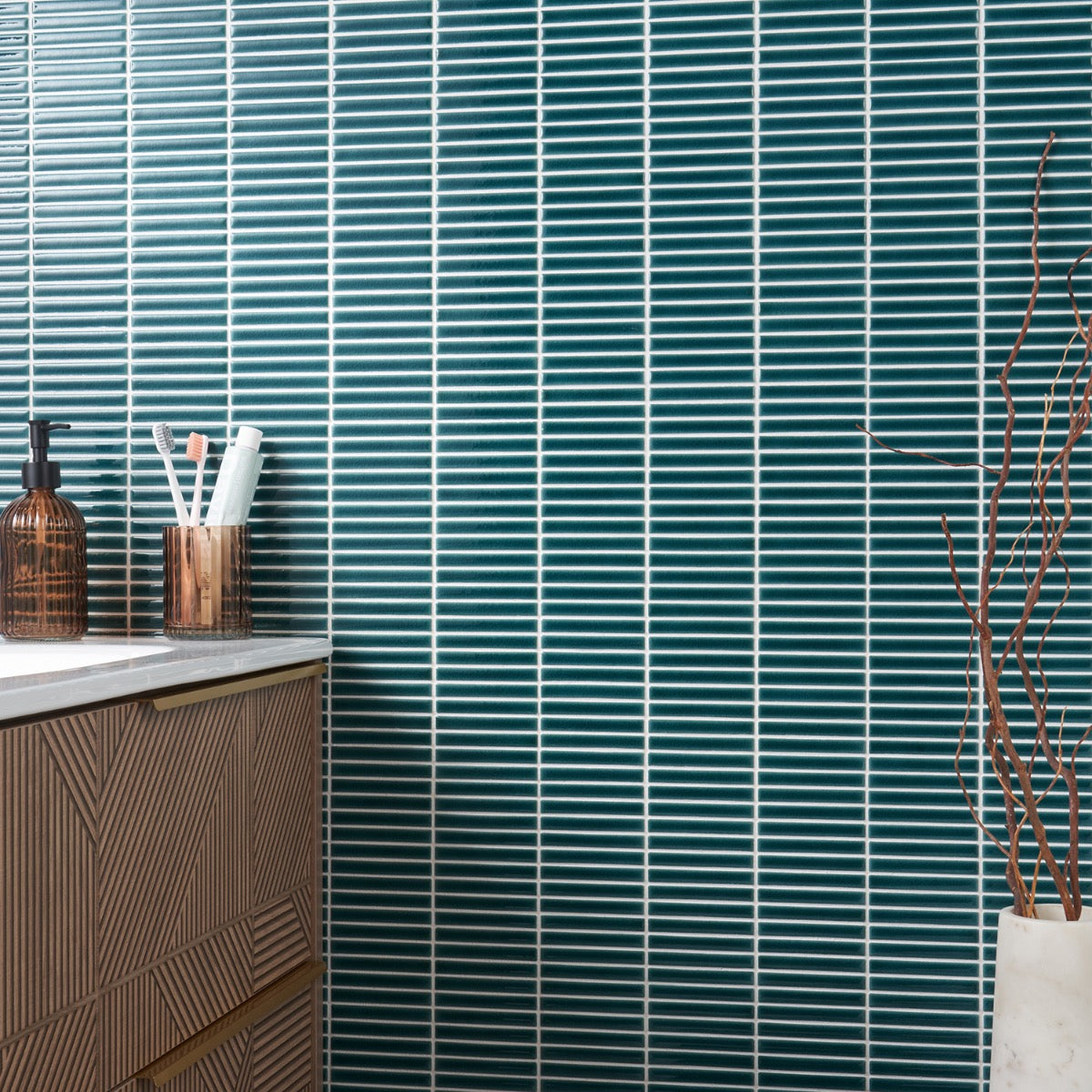 The Kai Teal Mosaic Tile is a masterpiece of modern design, blending rich teal hues with a crackled glossy finish that exudes sophistication. Its versatile application allows it to transform any space, from a chic kitchen backsplash to a luxurious bathroom retreat. Pair it with natural wood accents or sleek metallic fixtures to create a harmonious and stylish environment. This tile is not just a design element—it's a statement of refined taste and timeless beauty.