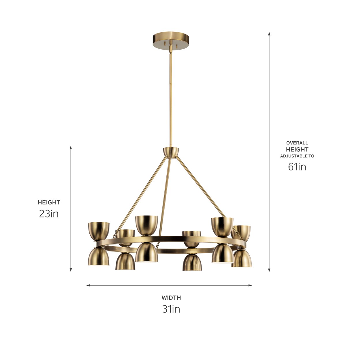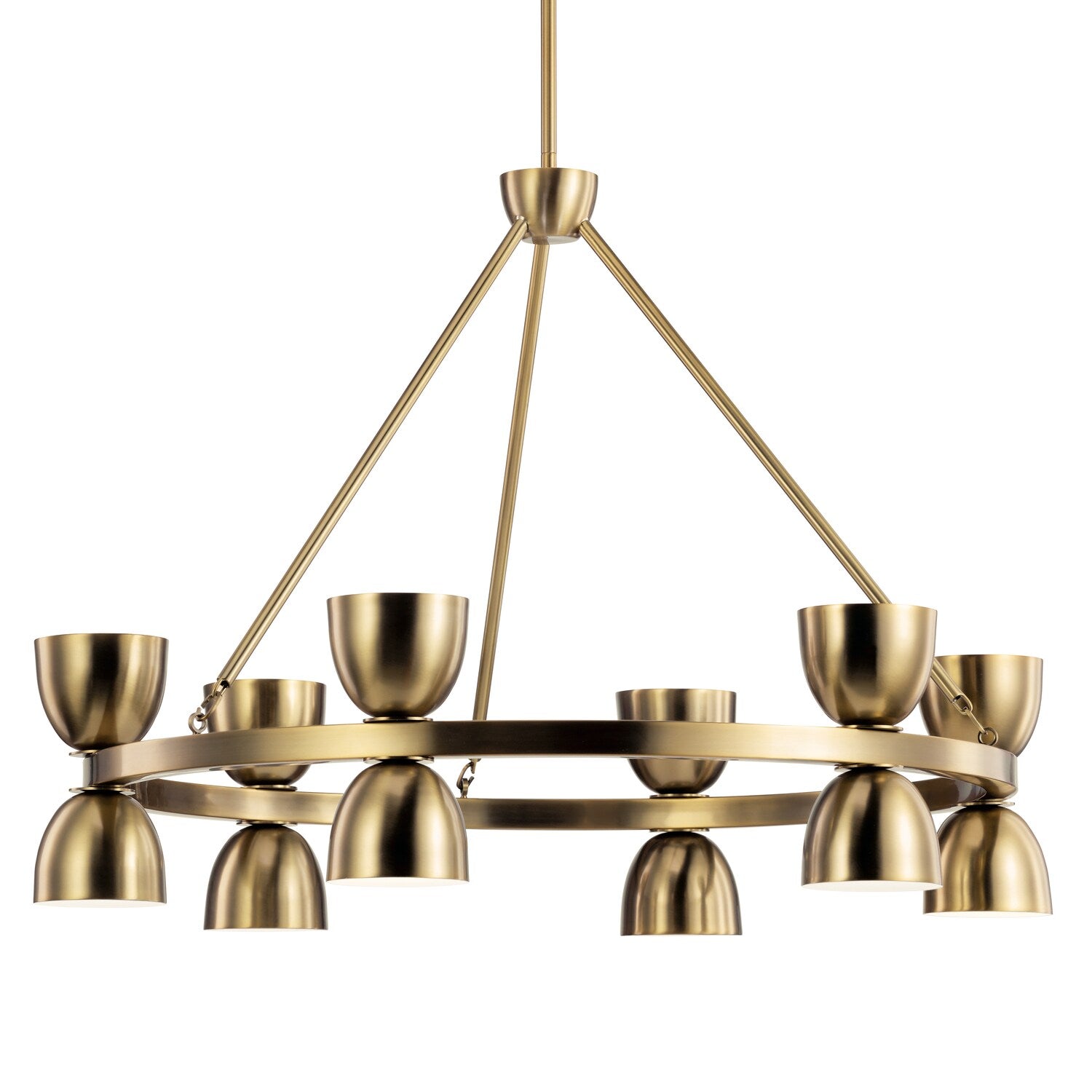 Illuminate any space with the Kichler Baland 12-Light Brushed Mid-century LED Chandelier. This striking centerpiece combines modern elegance with a timeless mid-century design, featuring both upward and downward lighting for versatile ambiance. Crafted in Brushed Natural Brass, it offers a sophisticated touch that enhances any dining room, kitchen, or living area.