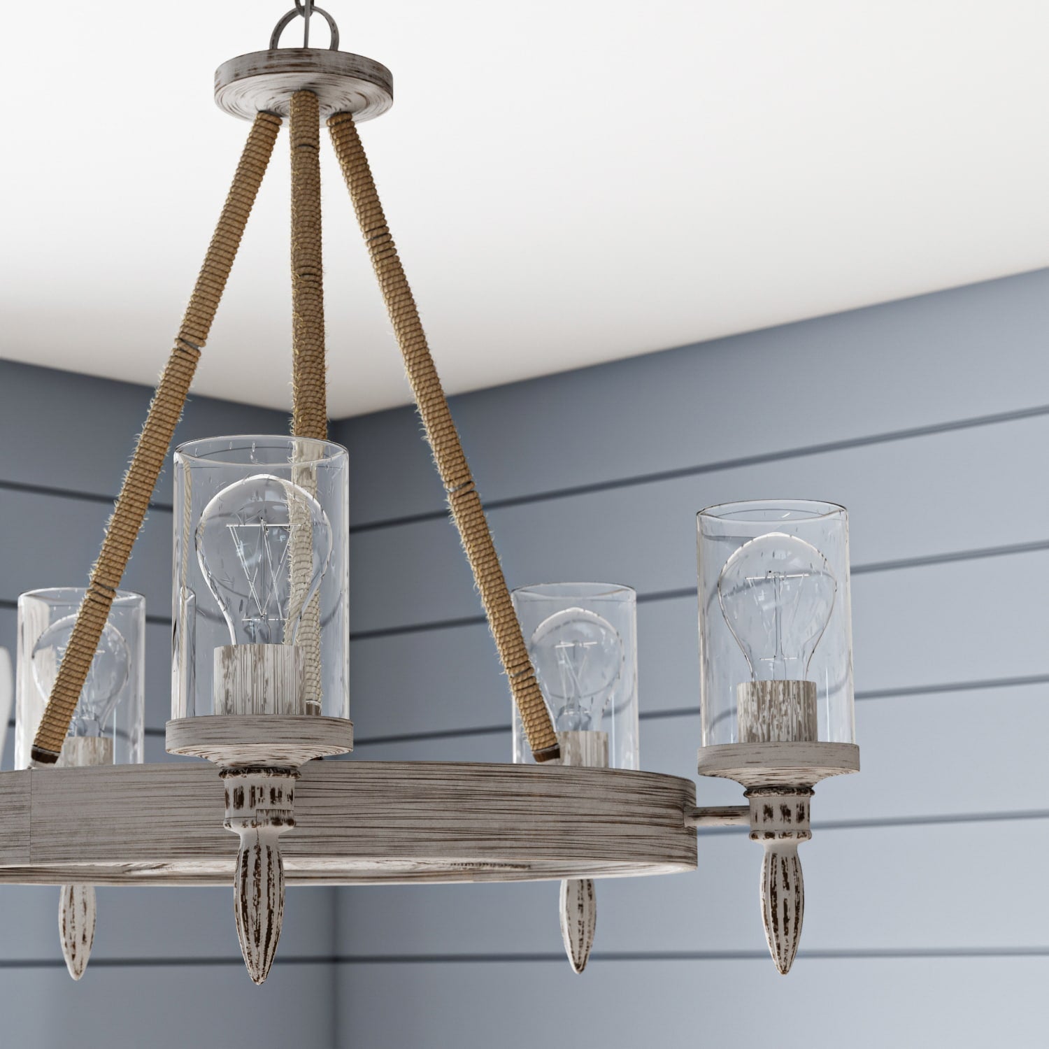 Transform your living area into a serene coastal retreat with the Minnow Chandelier from Kichler. The intricate rope accents and distressed antique white finish evoke the gentle charm of seaside abodes, while the clear seeded glass shades bathe your space in a sumptuous glow. Imagine pairing this piece with driftwood-inspired furniture or navy textiles for a nautically nuanced design. Essential for those who appreciate the intersection of relaxed elegance and high-end design, this chandelier is the epitome of coastal sophistication.