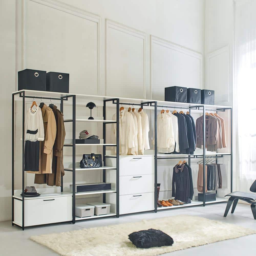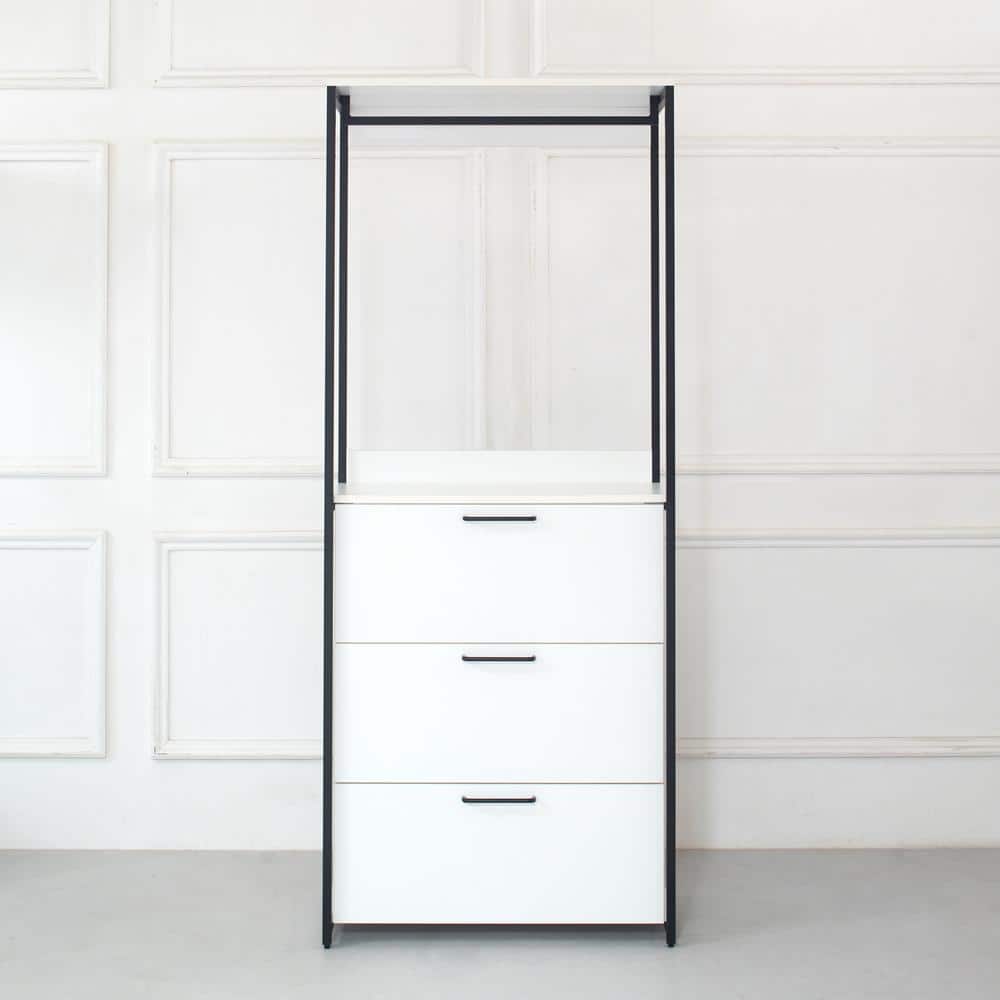Klair Living Fiona 32 in. W White Freestanding Wood Closet System Tower with 3 Drawers