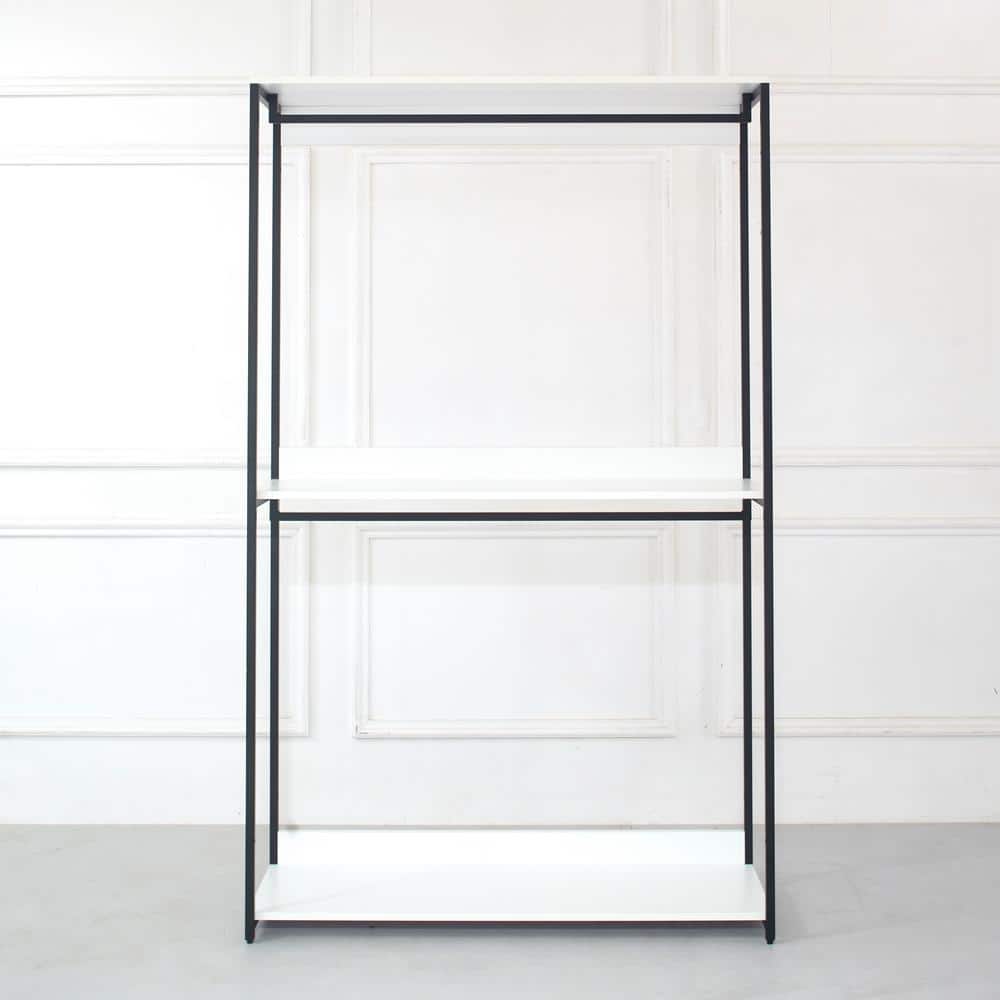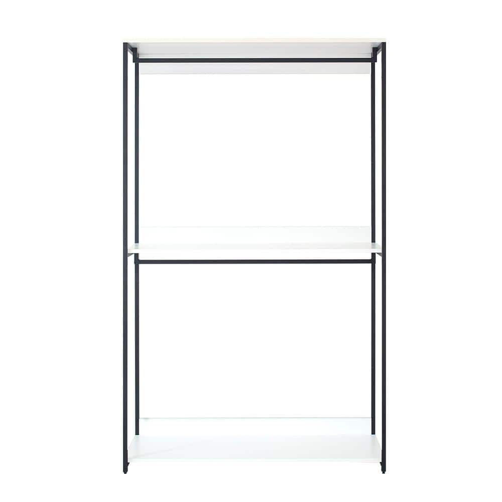 Optimize your closet space with the Fiona 47 in. W White Freestanding Wood Closet System Tower from Klair Living. With its durable E0 graded eco-friendly board and sleek powdered-coated metal frame, this tower combines style with functionality. Perfect for reach-in or walk-in closets, it provides a versatile and elegant solution to organize your clothes, bags, and accessories.
