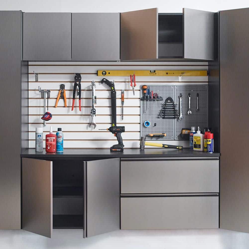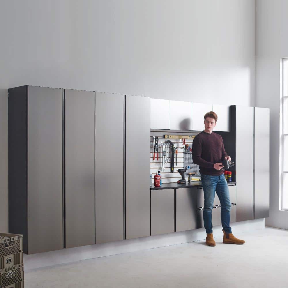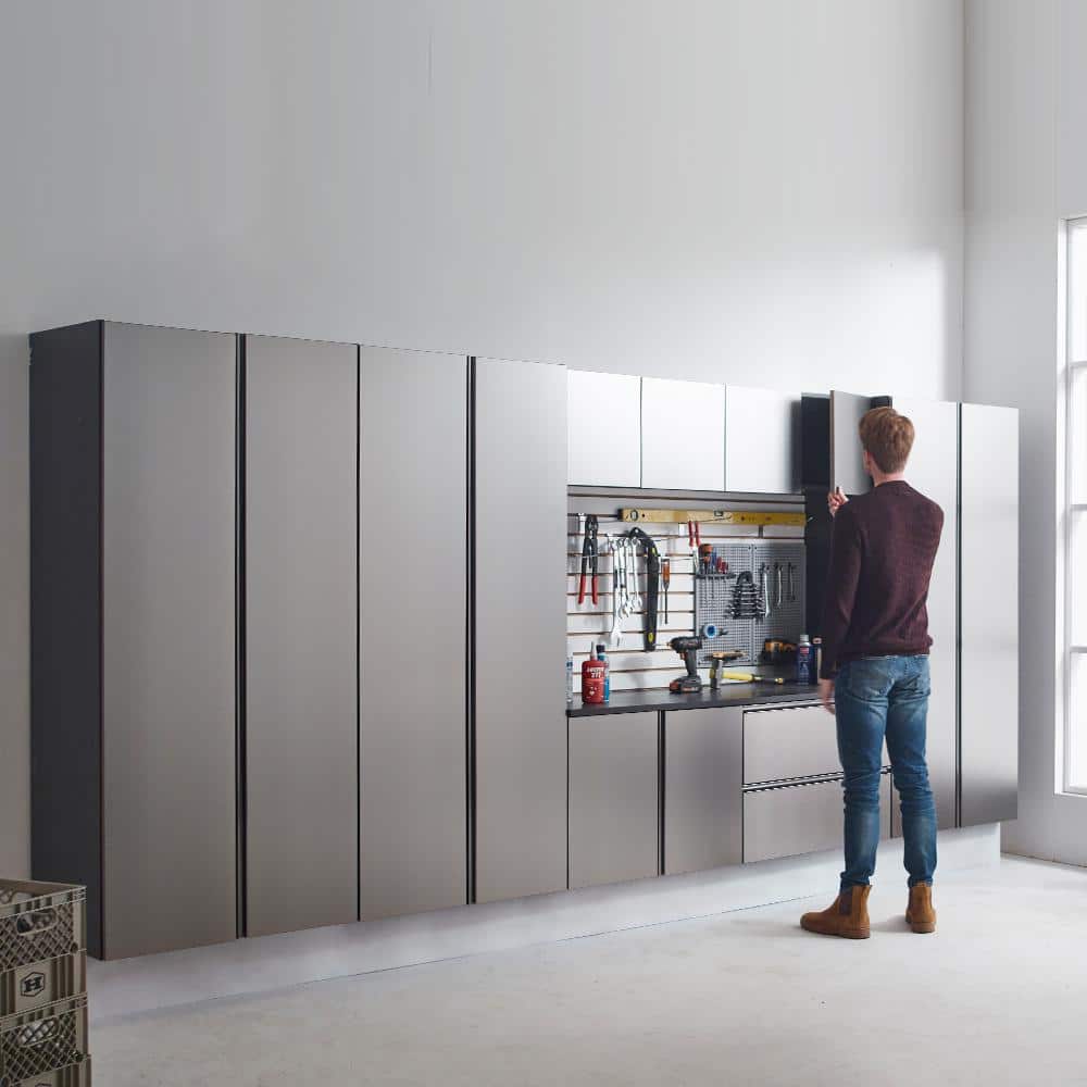 With its sleek metallic gray finish, the Nova Series Cabinet by Klair Living transforms any mundane garage space into a refined storage haven. The eco-friendly melamine paired with sturdy construction ensures this piece remains both a robust and stylish fixture. Imagine incorporating this bold yet understated element as a chic storage centerpiece, enhancing the utility while creating an environment of modern sophistication. Truly, this cabinet is essential in crafting well-organized elegance on a relentless pursuit of luxury.