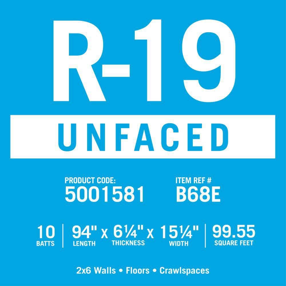R-19 Thermal Performance: Helps maintain indoor comfort and reduce energy bills in 2x6 cavities