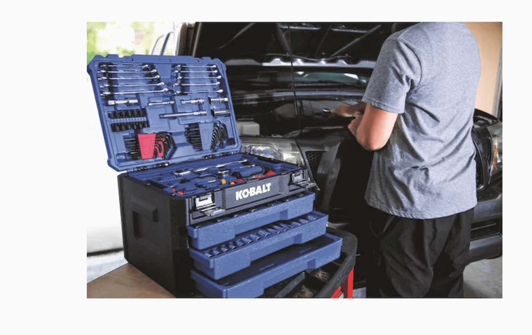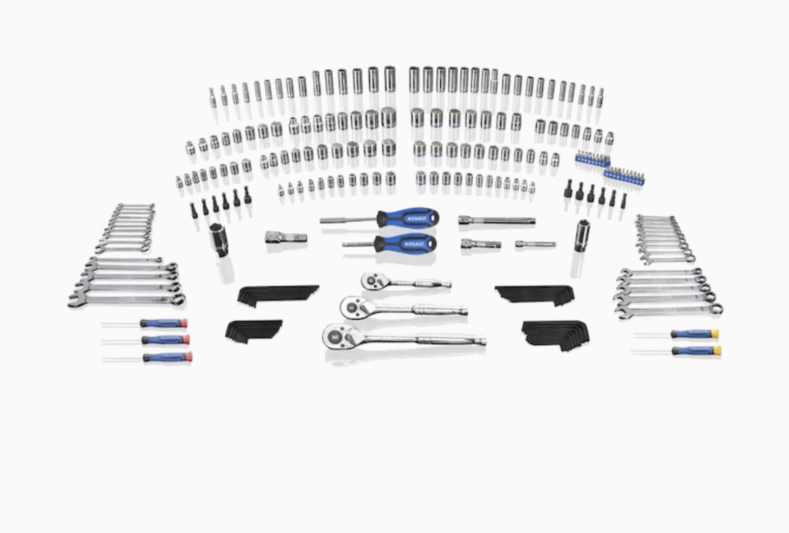 This new mechanic's toolset includes 117 commonly used 6- and 12-point sockets, three 90-tooth ratchets, 4 extensions, 30 wrenches that have 15 degrees offset for extra clearance, 40 hex keys, and 38 other tools