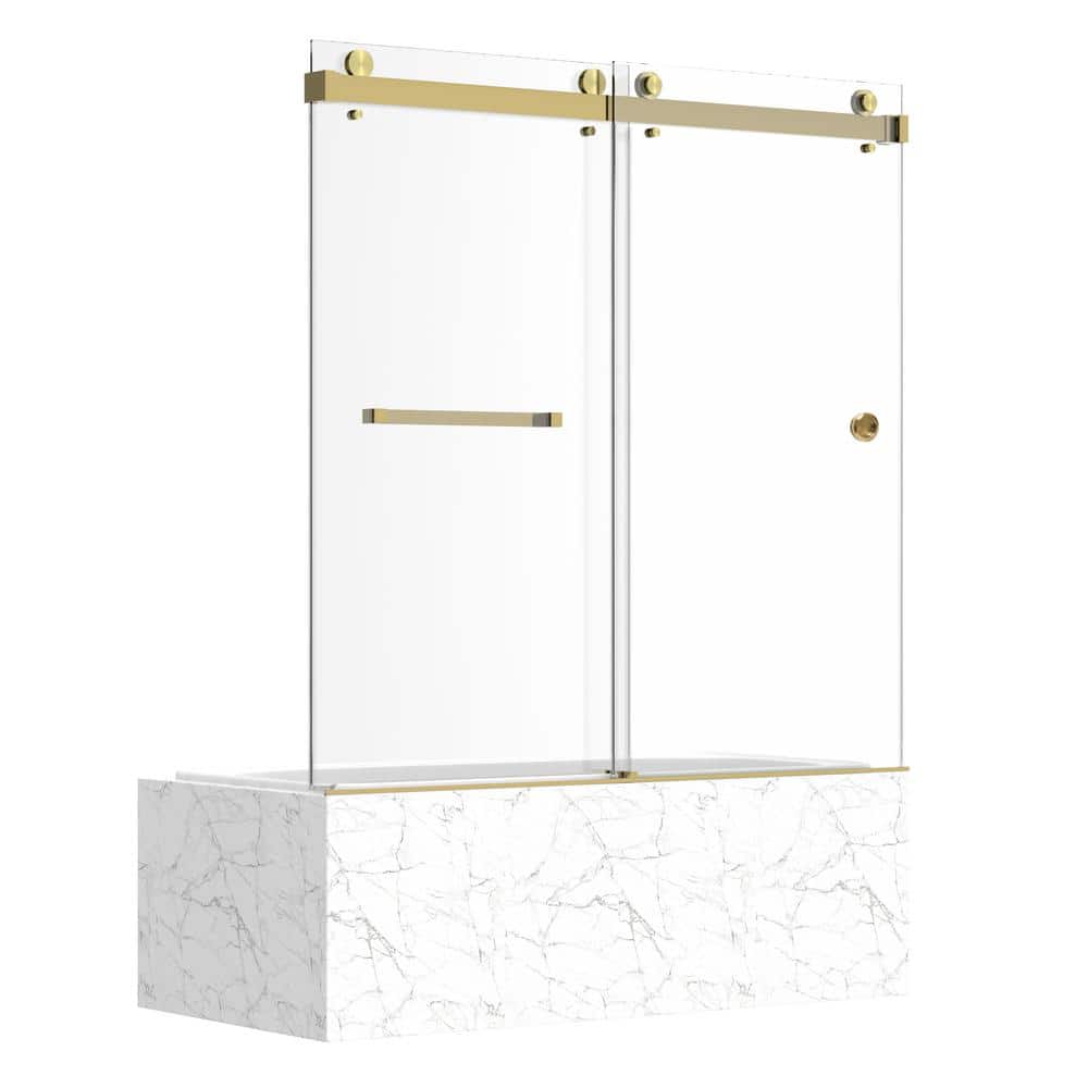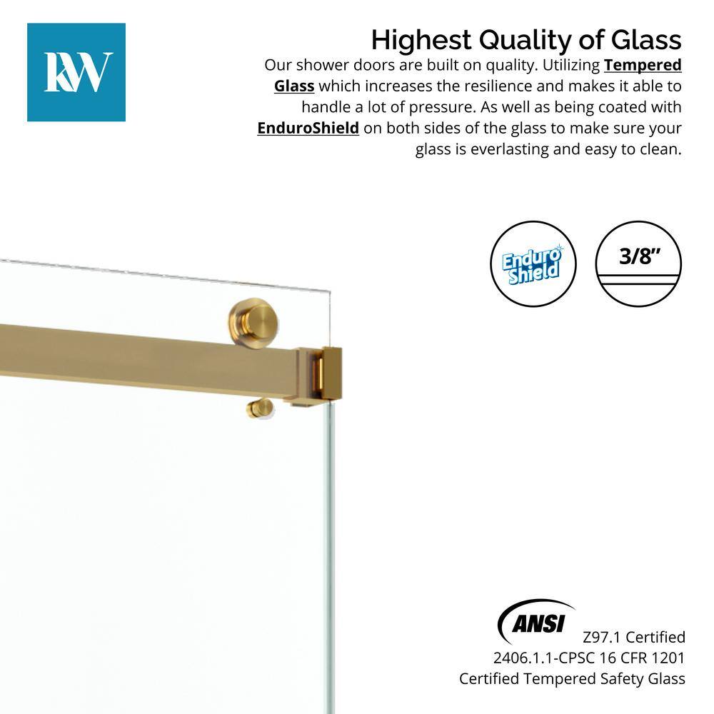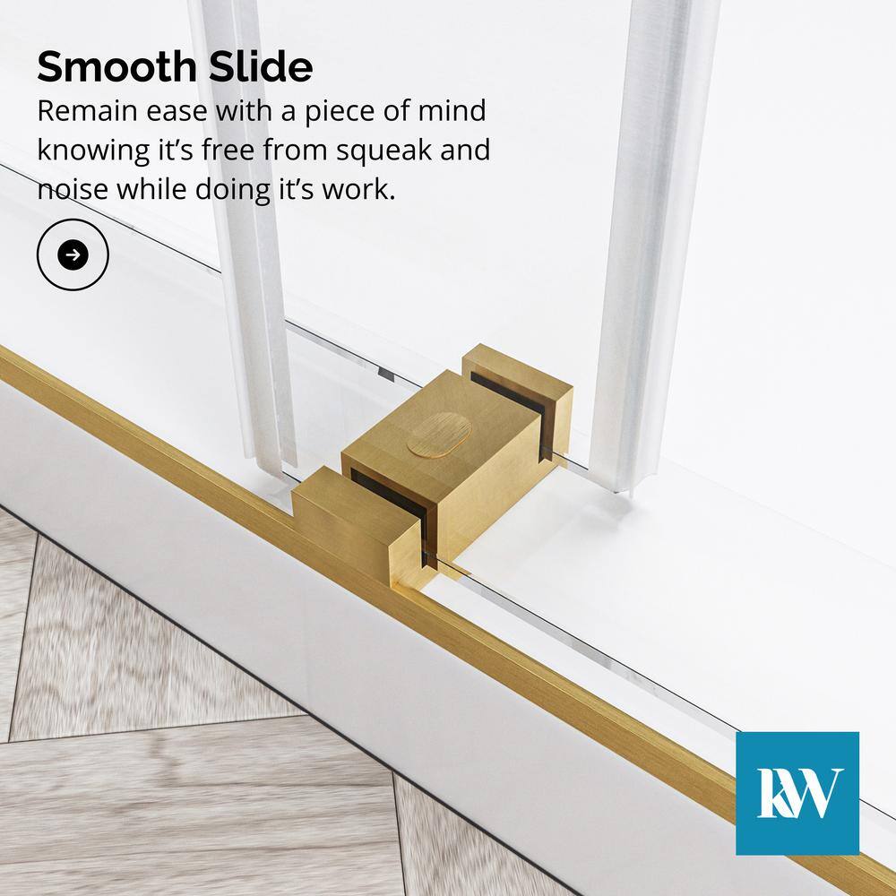 The Kobiworks Catalyst FP Frameless Shower Door in brushed gold exemplifies sleek contemporary design combined with functional elegance. With double sliding doors and easy-clean tempered glass, it enhances any bathroom's aesthetic while providing seamless access and minimal maintenance.