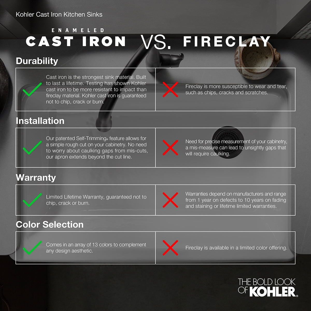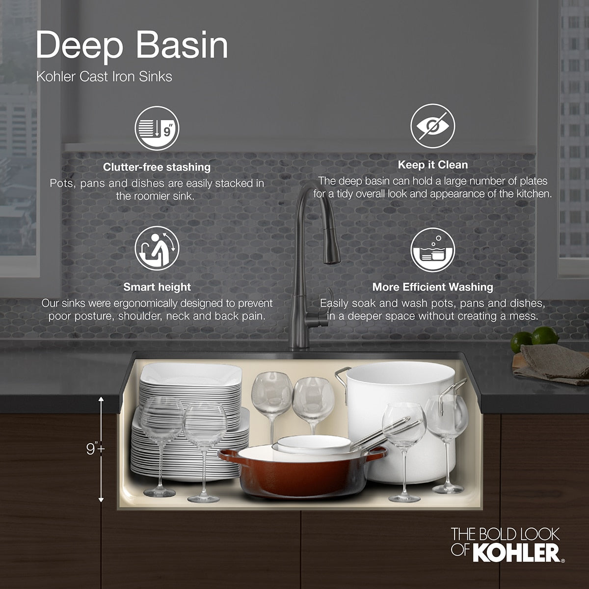 - Durable Material: Made from KOHLER® enameled cast iron for enhanced durability and longevity.