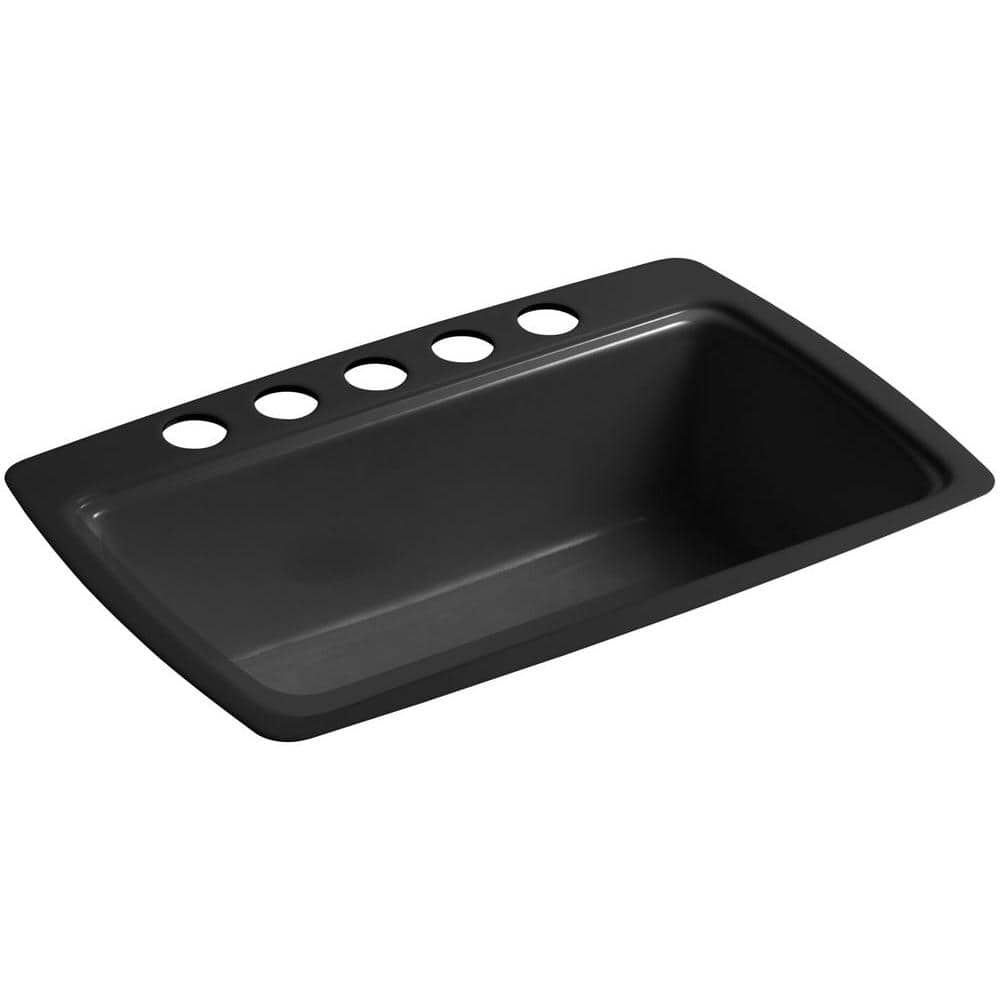 KOHLER Cape Dory Undermount Cast-Iron 33 in. 5-Hole Single Bowl Kitchen Sink in Black Black