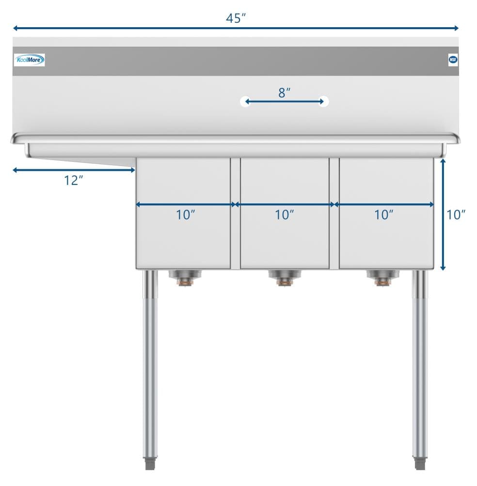 The KoolMore 3-Basin Stainless Steel Utility Tub is perfect for busy commercial and professional environments where heavy-duty, reliable washing is needed. Crafted from corrosion-resistant 304 stainless steel, this three-basin sink provides ample space for efficient washing, rinsing, and sanitizing, while the integrated drainboard and easy-clean corners enhance convenience and hygiene.