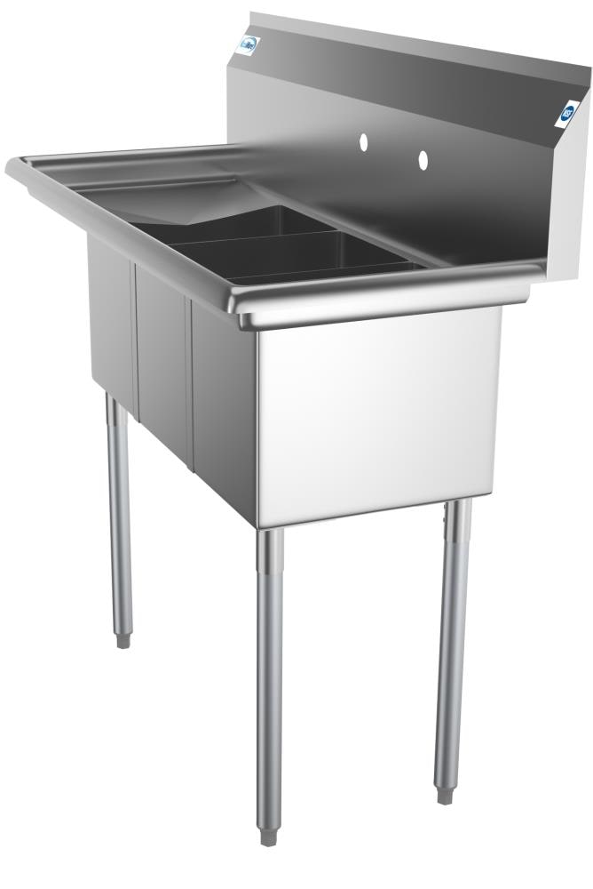 Q: How many basins does this utility tub have? A: This utility tub features three basins, ideal for a wash, rinse, and sanitize setup.