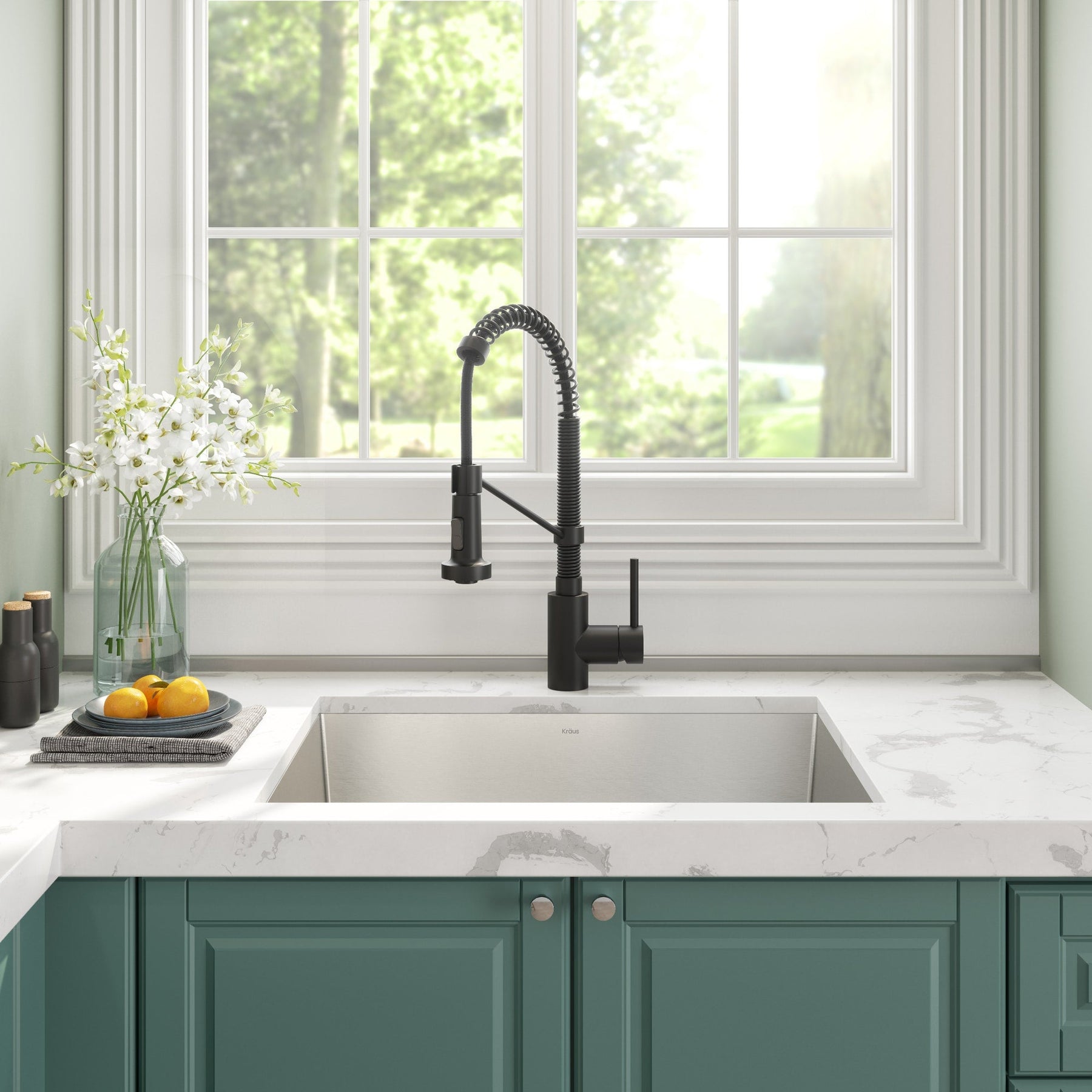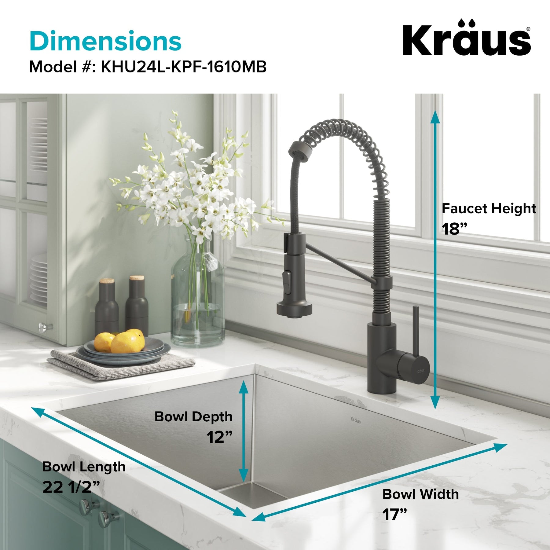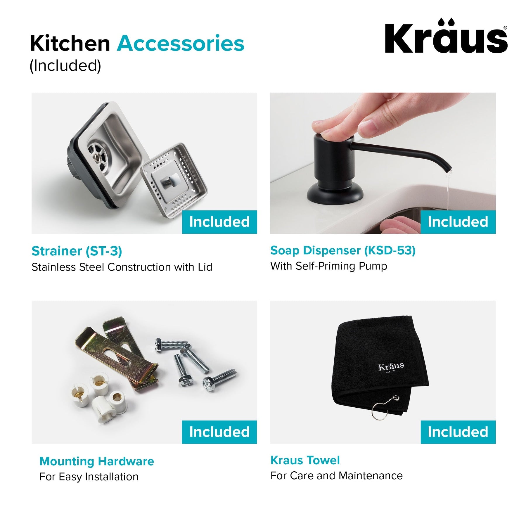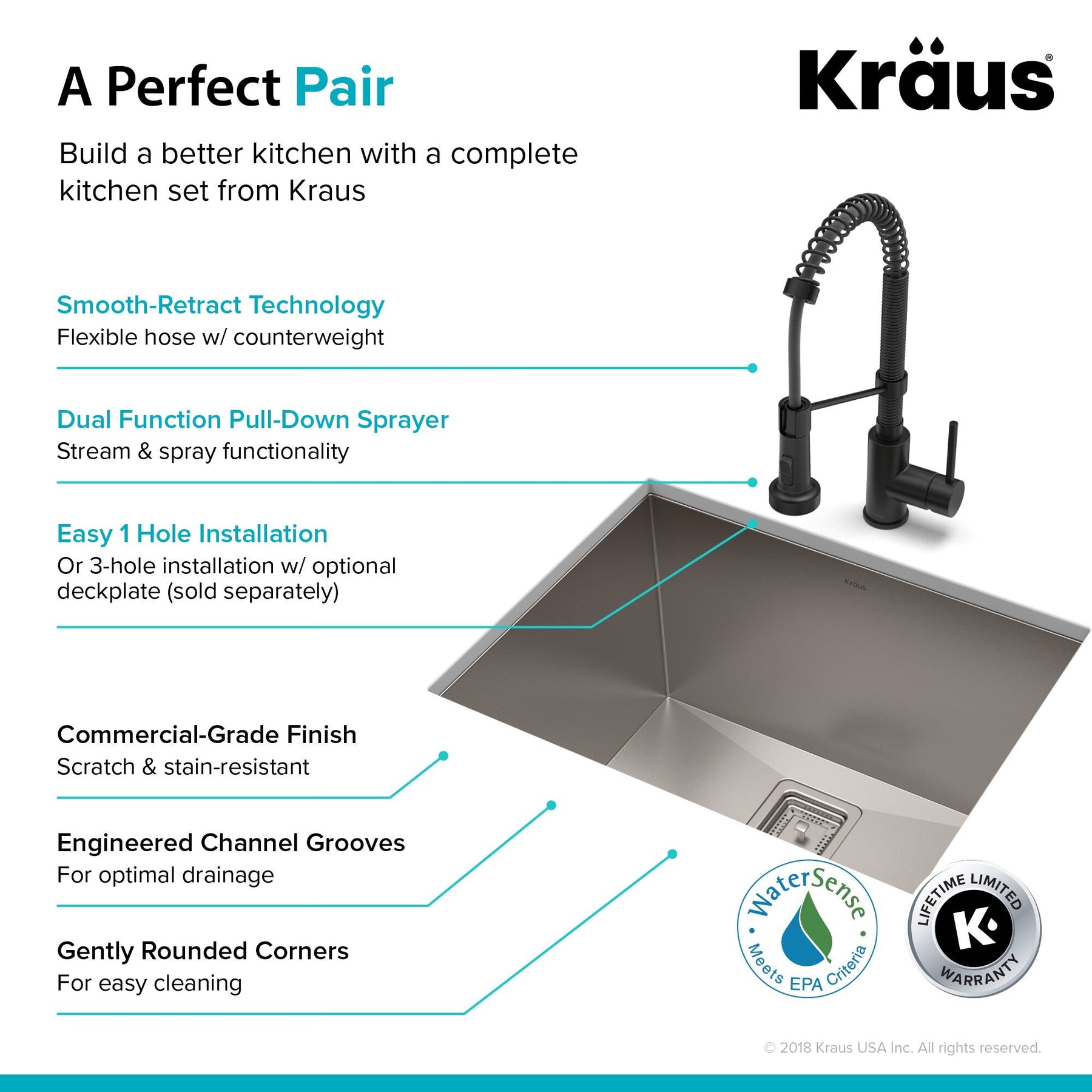 The Kraus Stainless Steel Undermount Laundry Sink is a sleek addition to any productive workspace, enhancing style and functionality. Featuring durable 18 gauge stainless steel construction and the innovative NoiseDefend™ Soundproofing Technology, this sink offers professional-grade quality designed to handle the heaviest loads. Complete with a commercial pull-down faucet, this package delivers exceptional value and chic modern aesthetics.