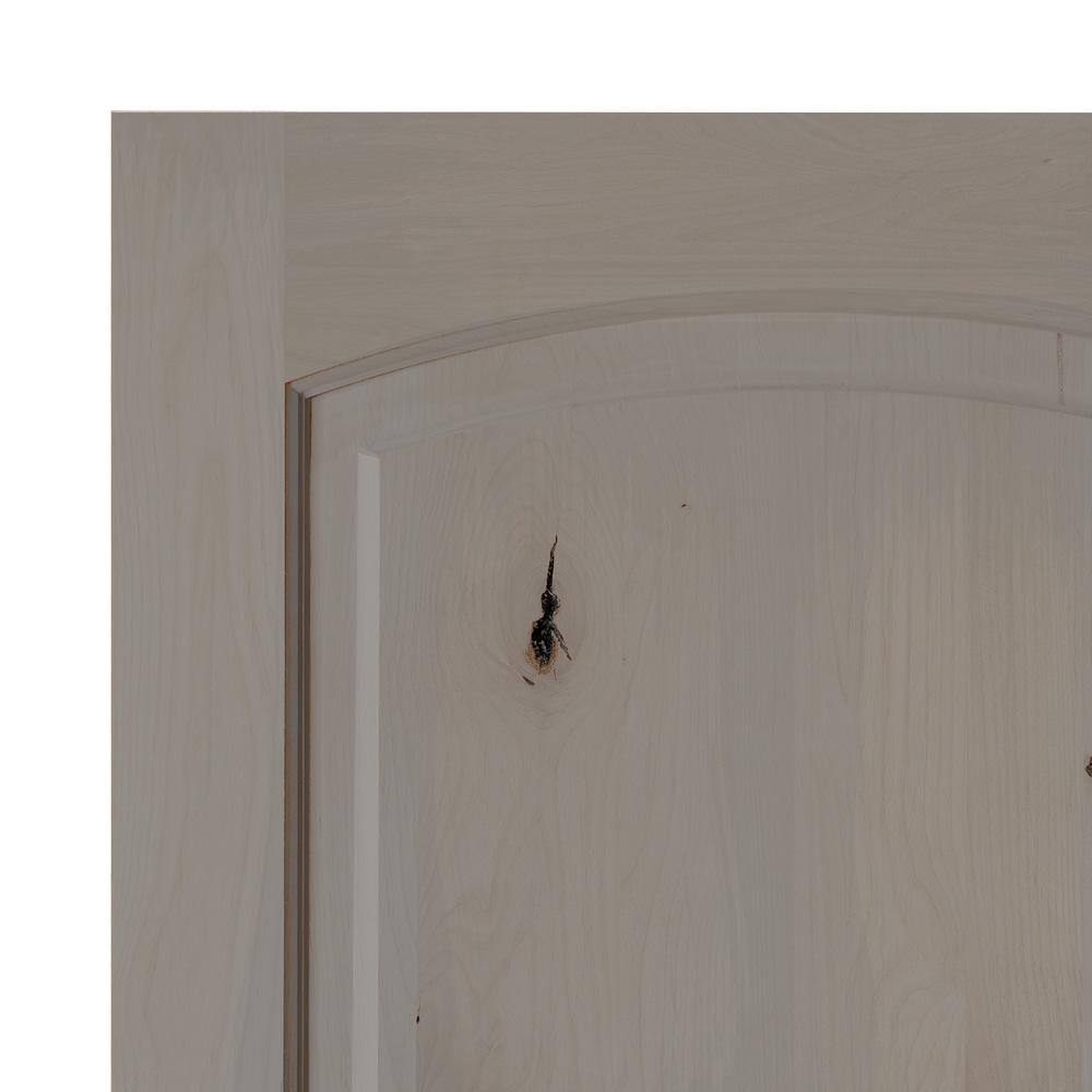 This Knotty Alder door ushers in warmth with its velvety grey stain and beautifully visible wood knots. The arched top panel lends a graceful, tailored profile that feels both classic and current. Pair it with bronze hardware and a dark painted trim to amplify contrast and character. It’s a chic, grounded statement piece that sets the tone for luxurious everyday living.