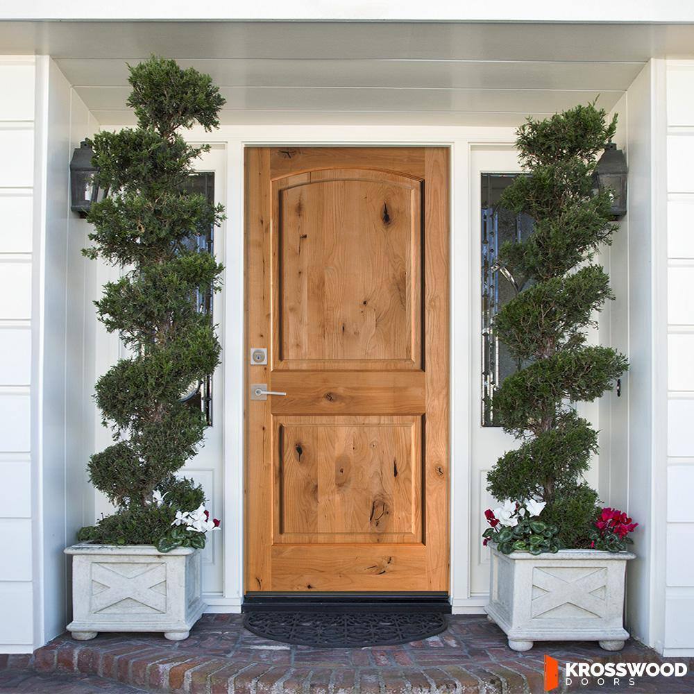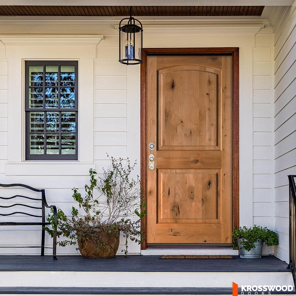 This knotty alder beauty ushers in a welcoming, organic elegance. The arched two-panel profile softens the facade, letting the richly grained wood—and its charming knots—take center stage. Pair it with matte black hardware and crisp white trim for a modern farmhouse moment, or bronze accents and stone for lodge-inspired warmth. It’s an essential layer of texture and tone that makes everyday arrivals feel luxurious.