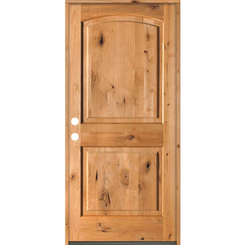 Krosswood Doors 36 in. x 80 in. Rustic Knotty Alder Arch Top Clear Stain Right-Hand Inswing Wood Single Prehung Front Door