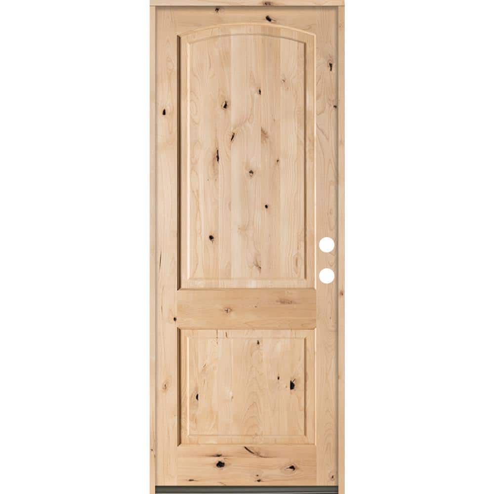 Krosswood Doors 36 in. x 96 in. Rustic Top Rail Arch 2-Panel Left-Hand Inswing Unfinished Knotty Alder Exterior Wood Prehung Front Door