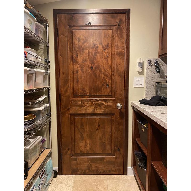 Solid Knotty Alder Construction: Durable 1-3/4 in. thick panels with visible character knots.