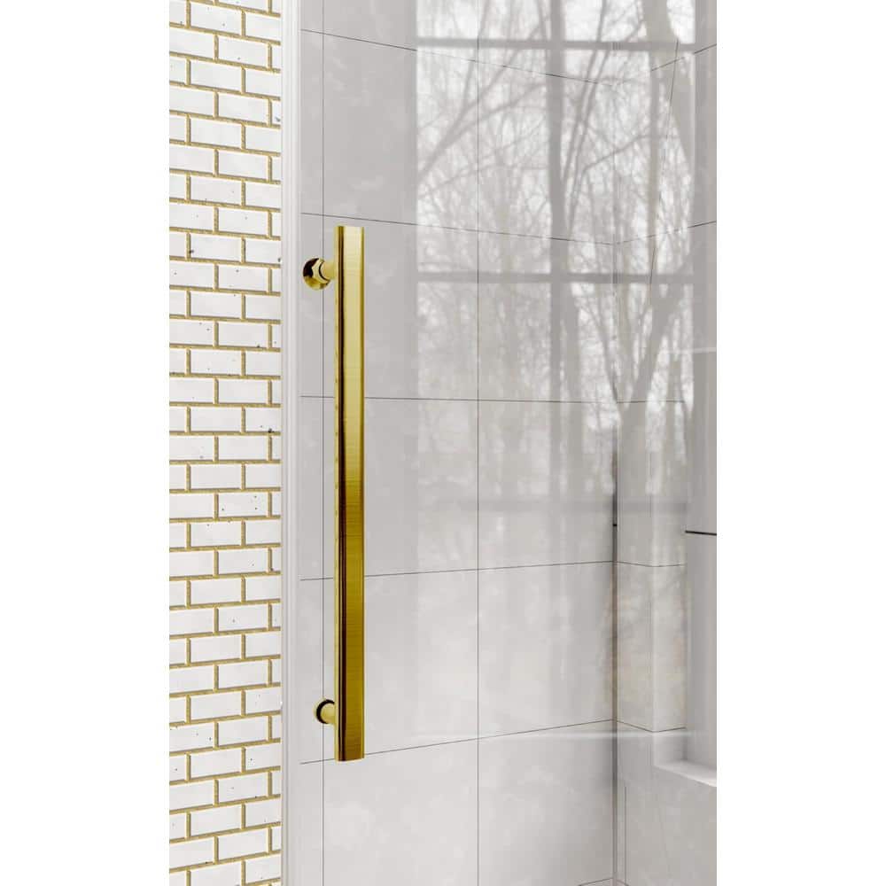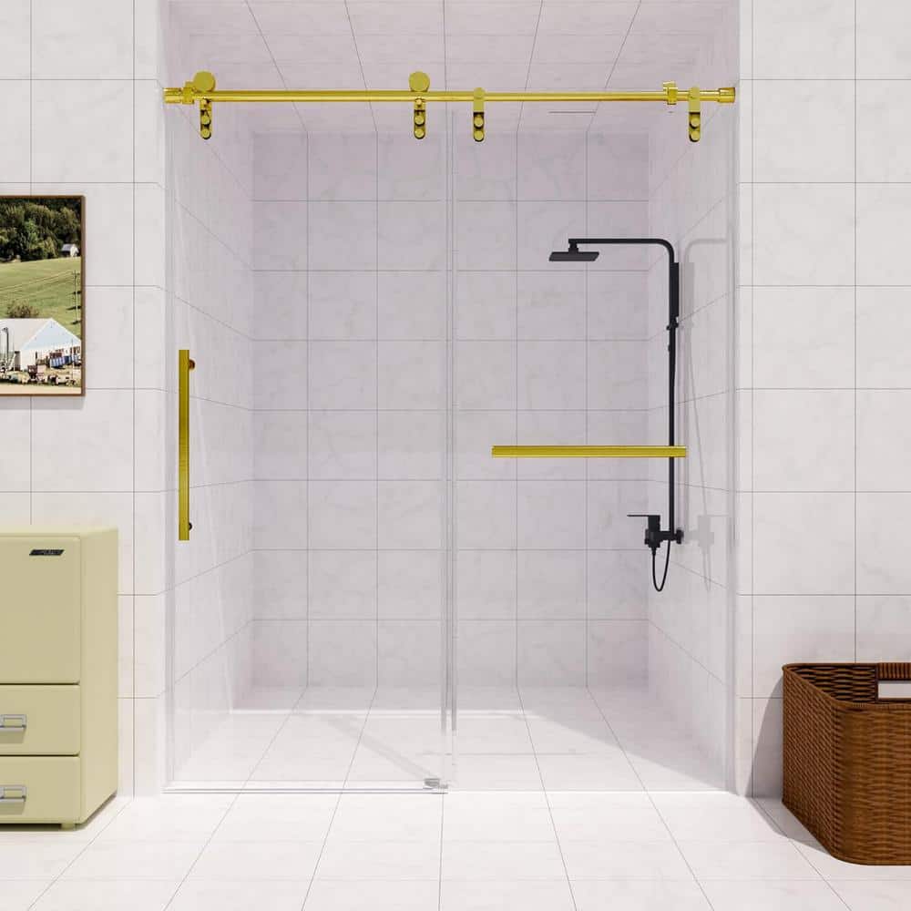 KULLAVIK 56-60 in. W x 76 in. H Frameless Glass Shower Door, Stainless Steel Handle, Noiseless, Waterproof, Shatterproof, Golden