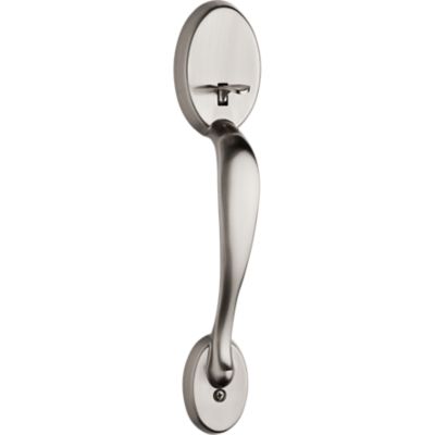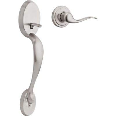 A classic Chelsea exterior handleset paired with the sculpted Tustin interior lever in Satin Nickel. Designed for exterior entry doors, this set offers adjustable installation and reliable performance from Kwikset’s Signature Series.