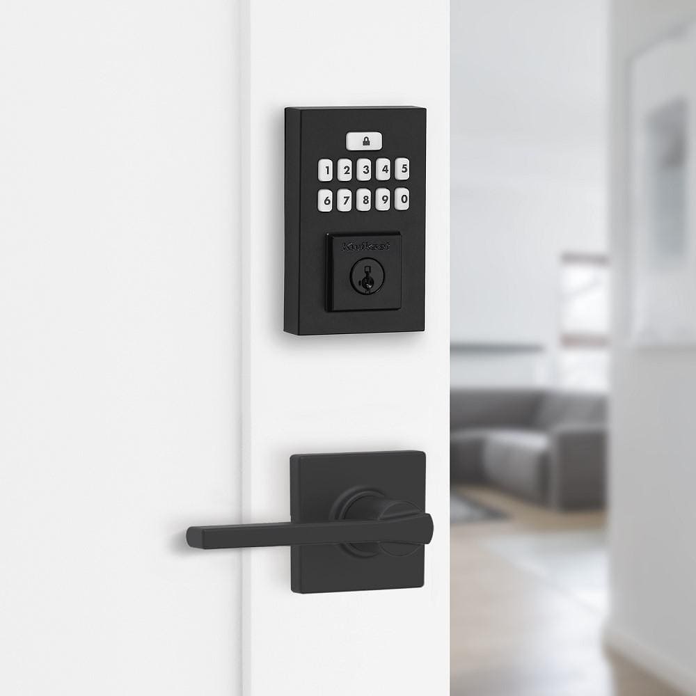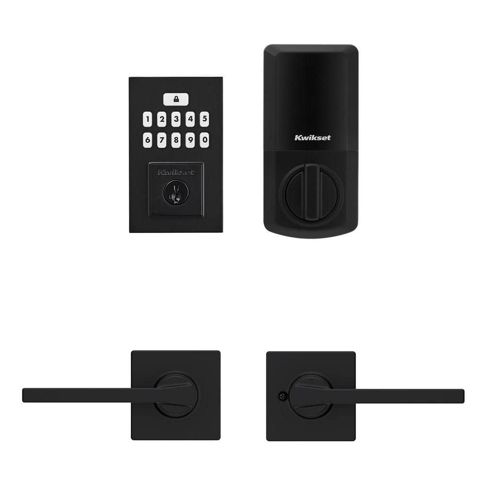 Kwikset SmartCode 260 Contemporary Matte Black Keypad Electronic Deadbolt Featuring SmartKey Security With Casey Passage Lever