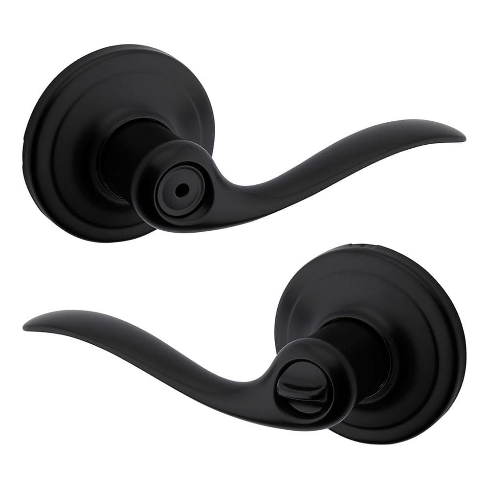 Kwikset Tustin Matte Black Privacy Bed/Bath Door Handle with Microban Antimicrobial Technology and Lock