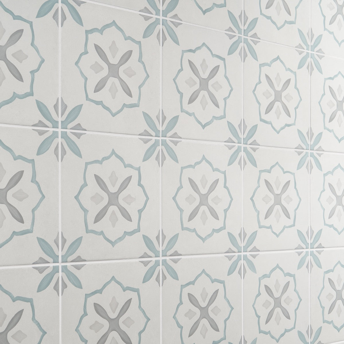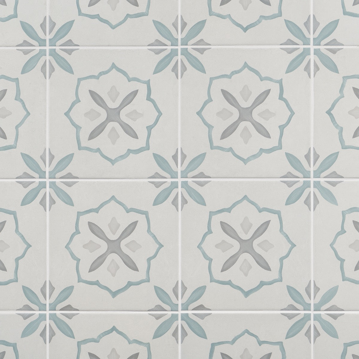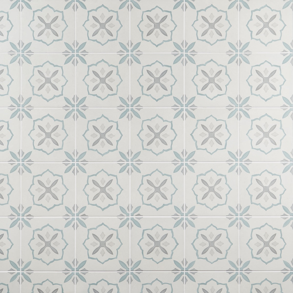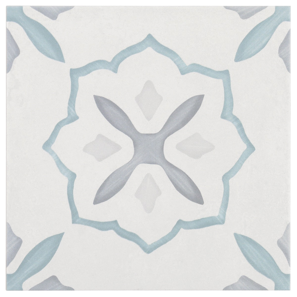 The Lapaz Stella Blue 9x9 Matte Porcelain Tile brings Mediterranean charm to your space with its delicate floral motif in soft blue, white, and gray. Durable and versatile, it's perfect for walls and floors in both residential and commercial settings.