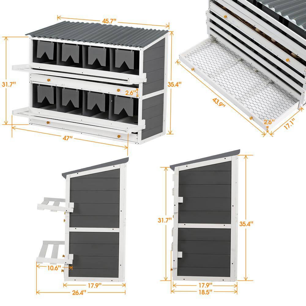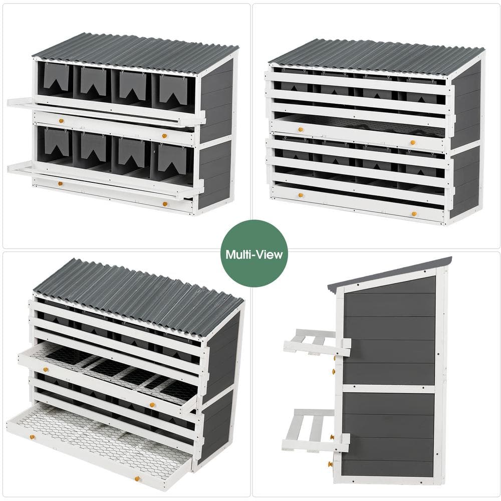 The Tidoin Large Wood Chicken Nesting Box provides a premium, natural environment for laying hens, enhancing their comfort and productivity. With eight spacious compartments, two roll-out egg collection drawers, and high-quality pine wood construction, it offers durability and ease of use for both pros and DIY enthusiasts seeking efficiency and rustic charm in their chicken coops.