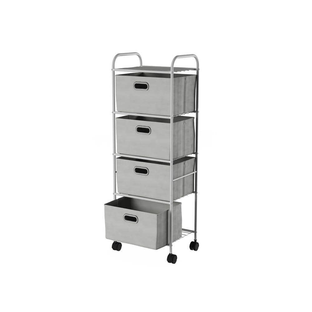 Lavish Home 12 in. W x 45 in. H 4-Drawer Rolling Metal Storage Organizer with Fabric Bins