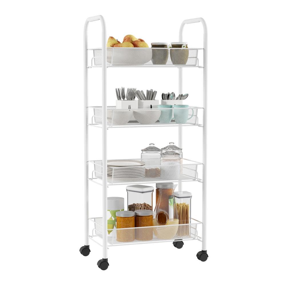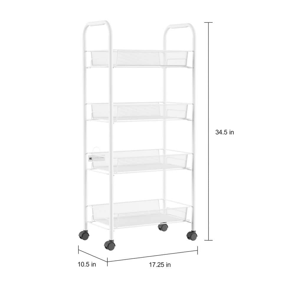 Lavish Home 4-Tier Metal Wheeled Narrow Storage Shelf Organizer Cart