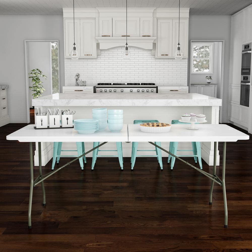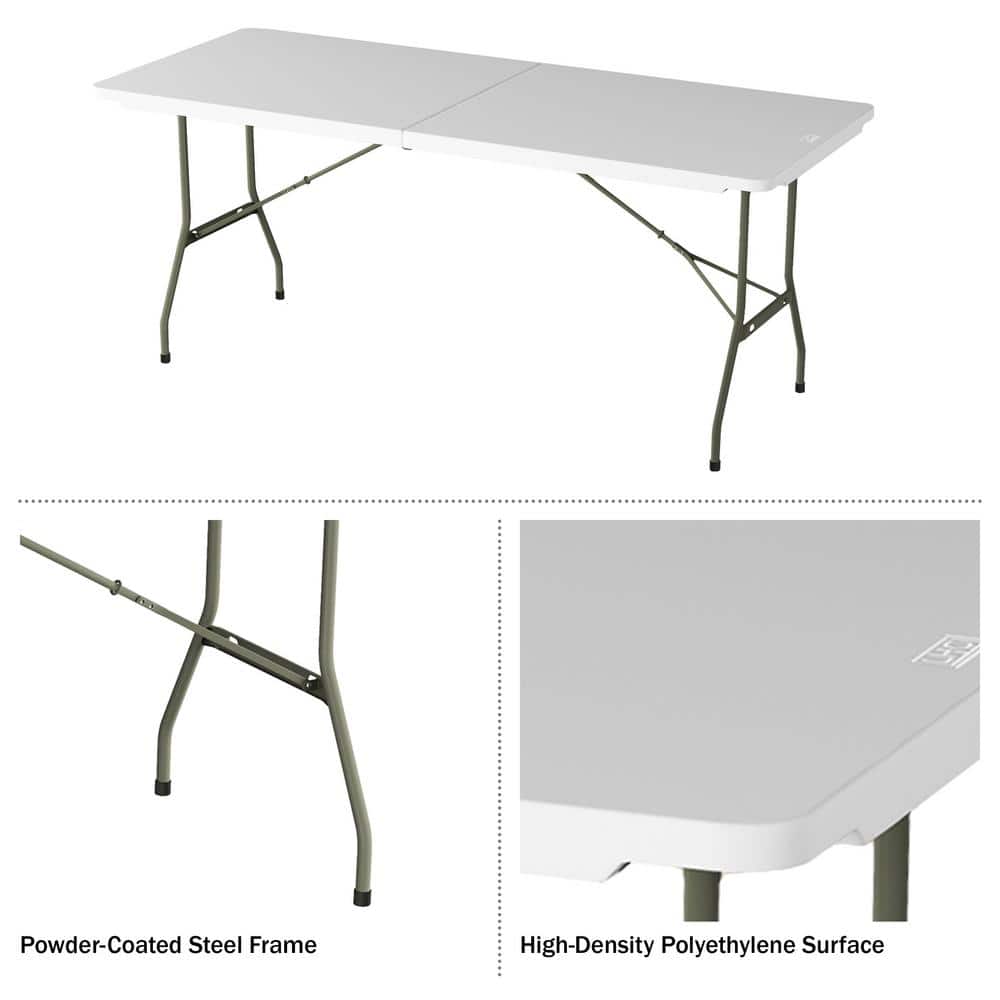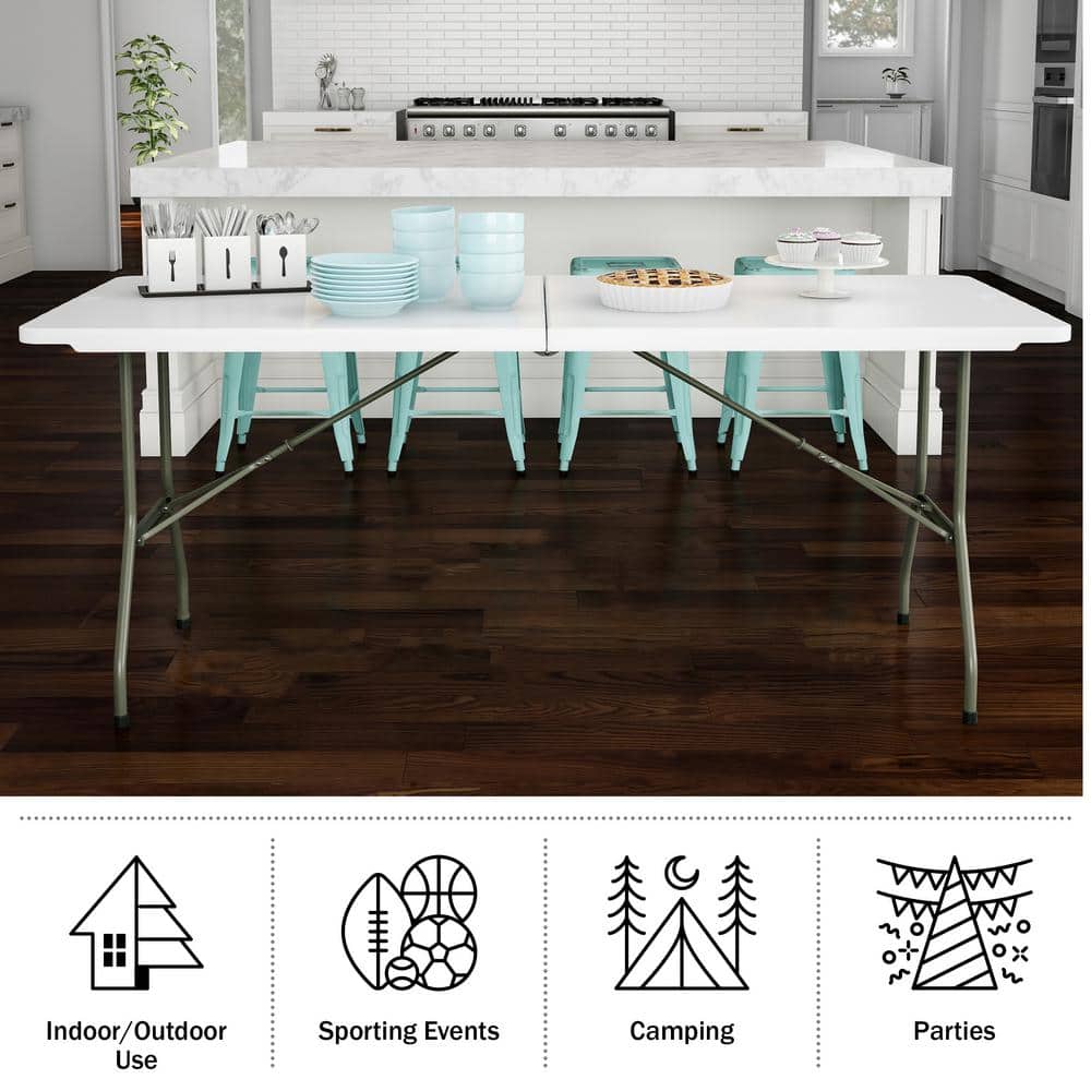 Maximize space and versatility with the Lavish Home 6 ft Folding Utility Table. Designed with a sturdy powder-coated steel base and a resilient plastic tabletop, it supports up to 550 lbs. Perfect for gatherings, crafting, or outdoor dining, its portable build and easy maintenance make it a staple for practical and spontaneous use.