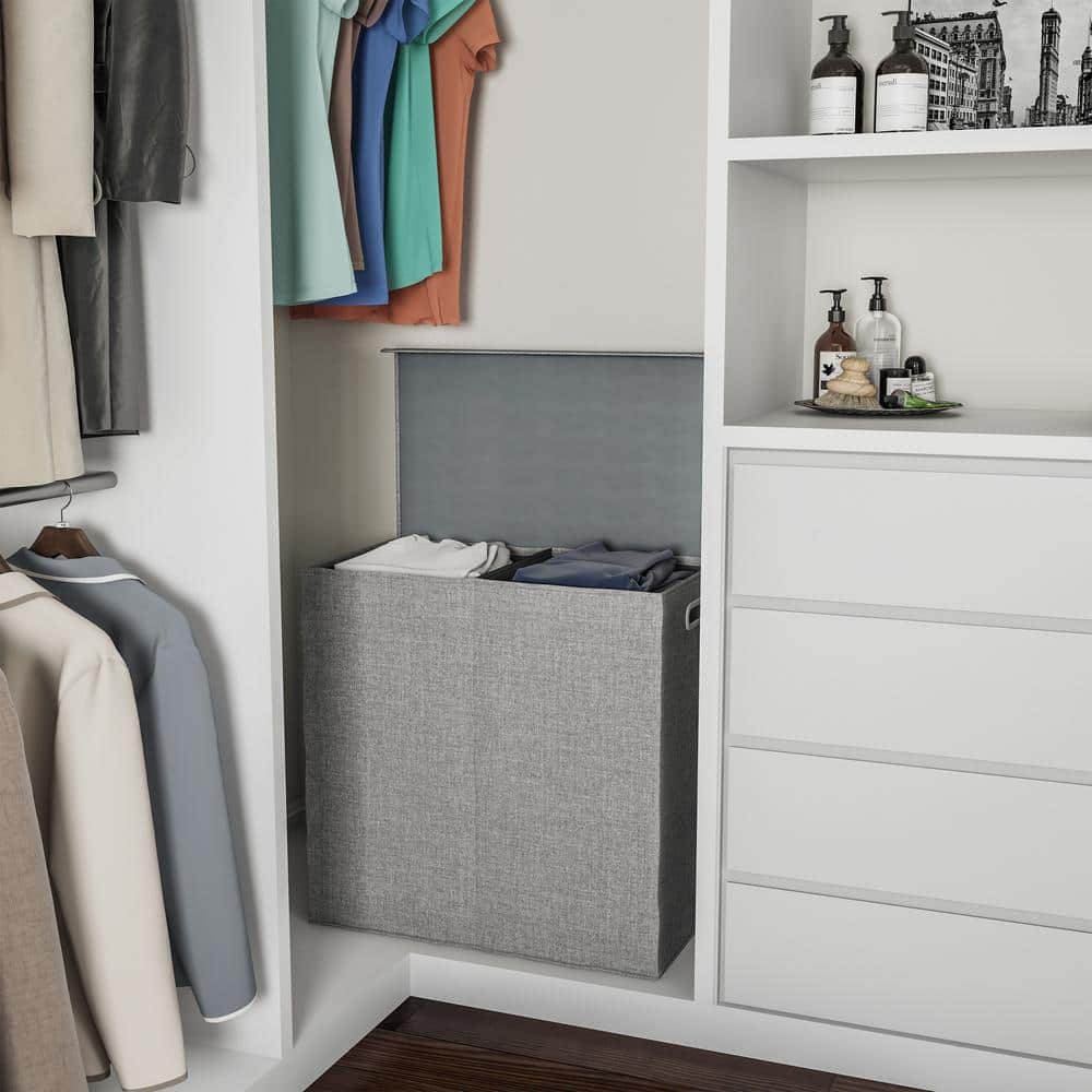This collapsible double laundry hamper blends functionality with understated elegance, transforming any mundane laundry task into an enjoyable experience. Its soothing gray hue complements various interior design palettes, adding calm and charm to a space. Crafted from durable flax fabric, the hamper’s thoughtful design features dual compartments for seamless sorting. Incorporate this piece into your home to experience an elegant solution to laundry storage that epitomizes chic practicality.