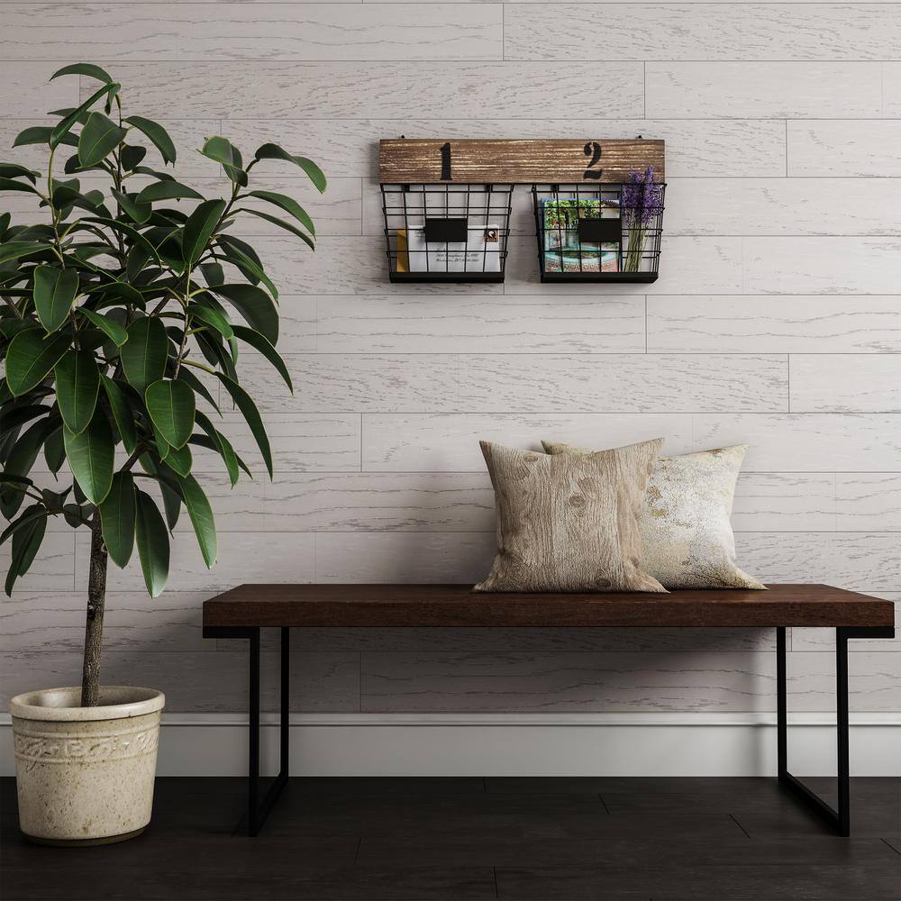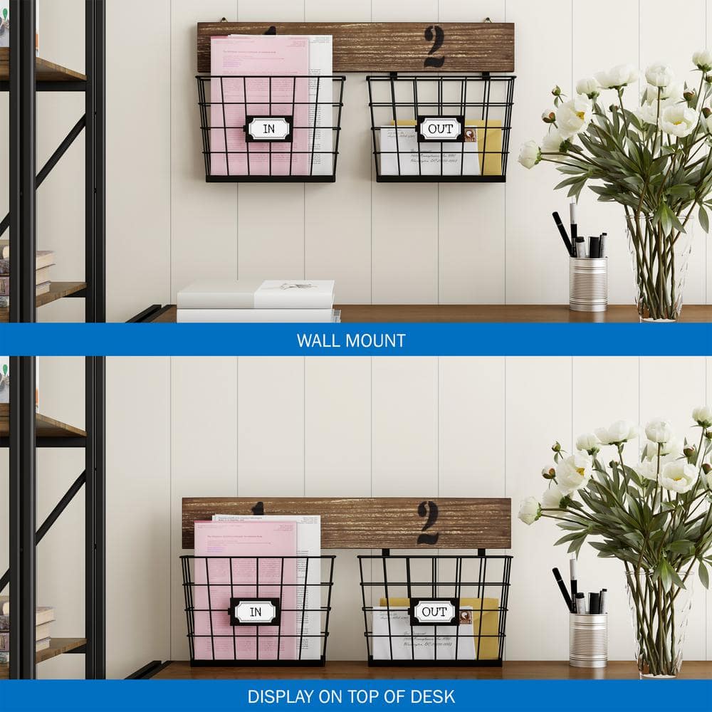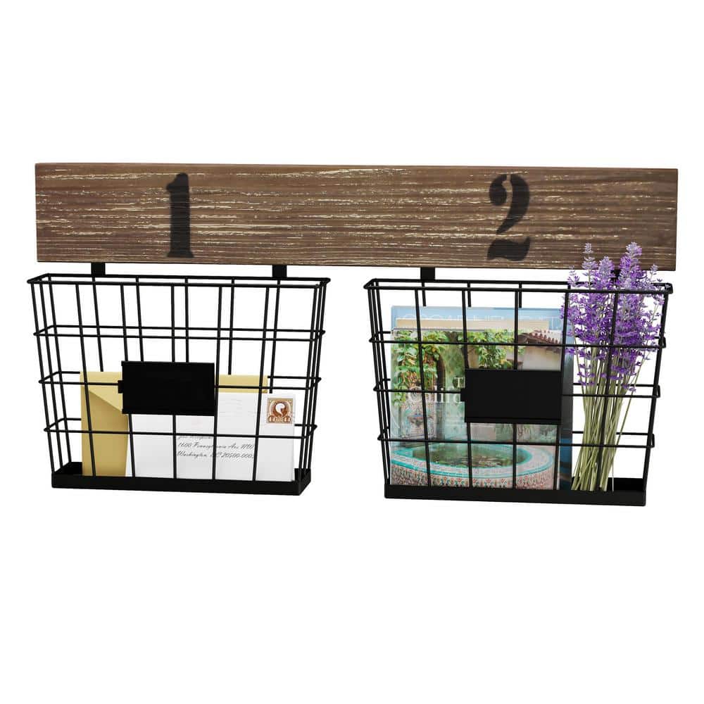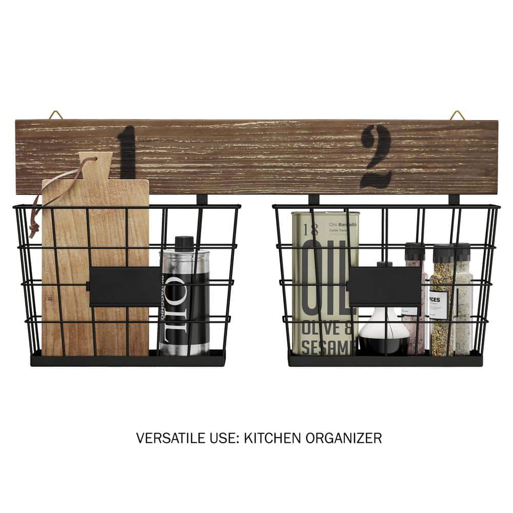 Elevate your organizational game with the Lavish Home Rustic Double Wire Basket Wall Organizer. This stylish yet functional piece combines distressed wood with matte black metal to deliver a farmhouse chic aesthetic, perfect for decluttering your home or office space.