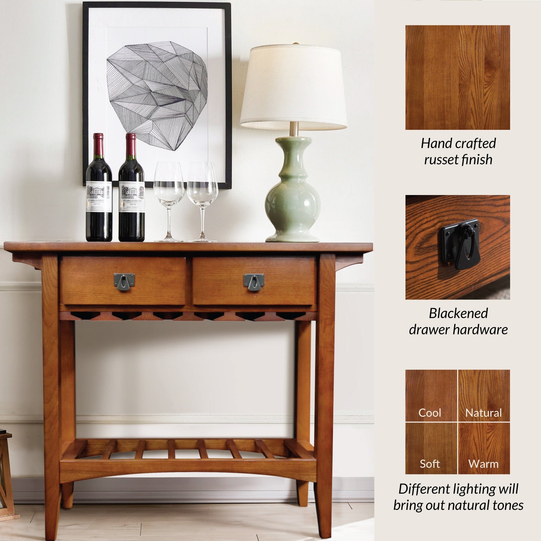 Elegantly crafted from North American solid hardwood, the Leick Home Russet Wine Cabinet is perfect for storing and displaying your favorite wines and stemware. Its authentic Mission style, coupled with a rich russet finish, integrates seamlessly into any home decor.