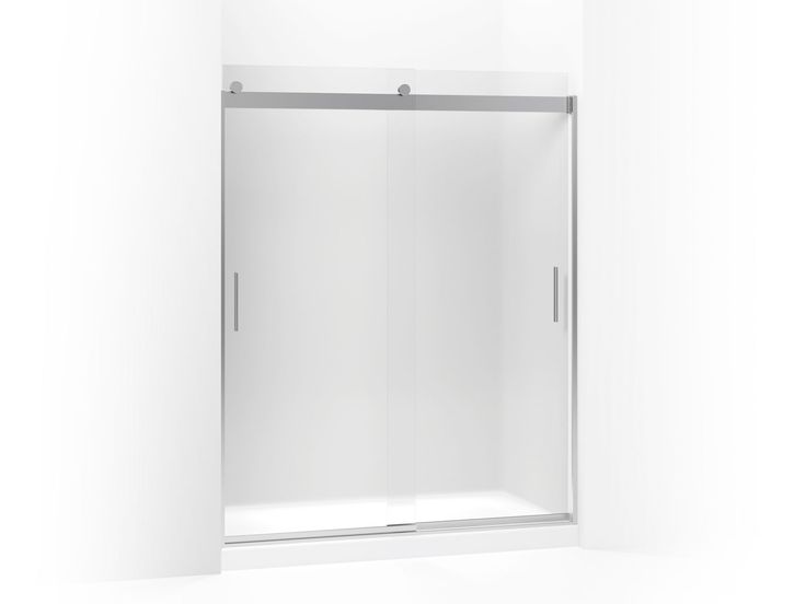 KOHLER Levity 56-60 in. W x 74 in. H Sliding Frameless Shower Door in Matte Black with Towel Bar Frosted Glass